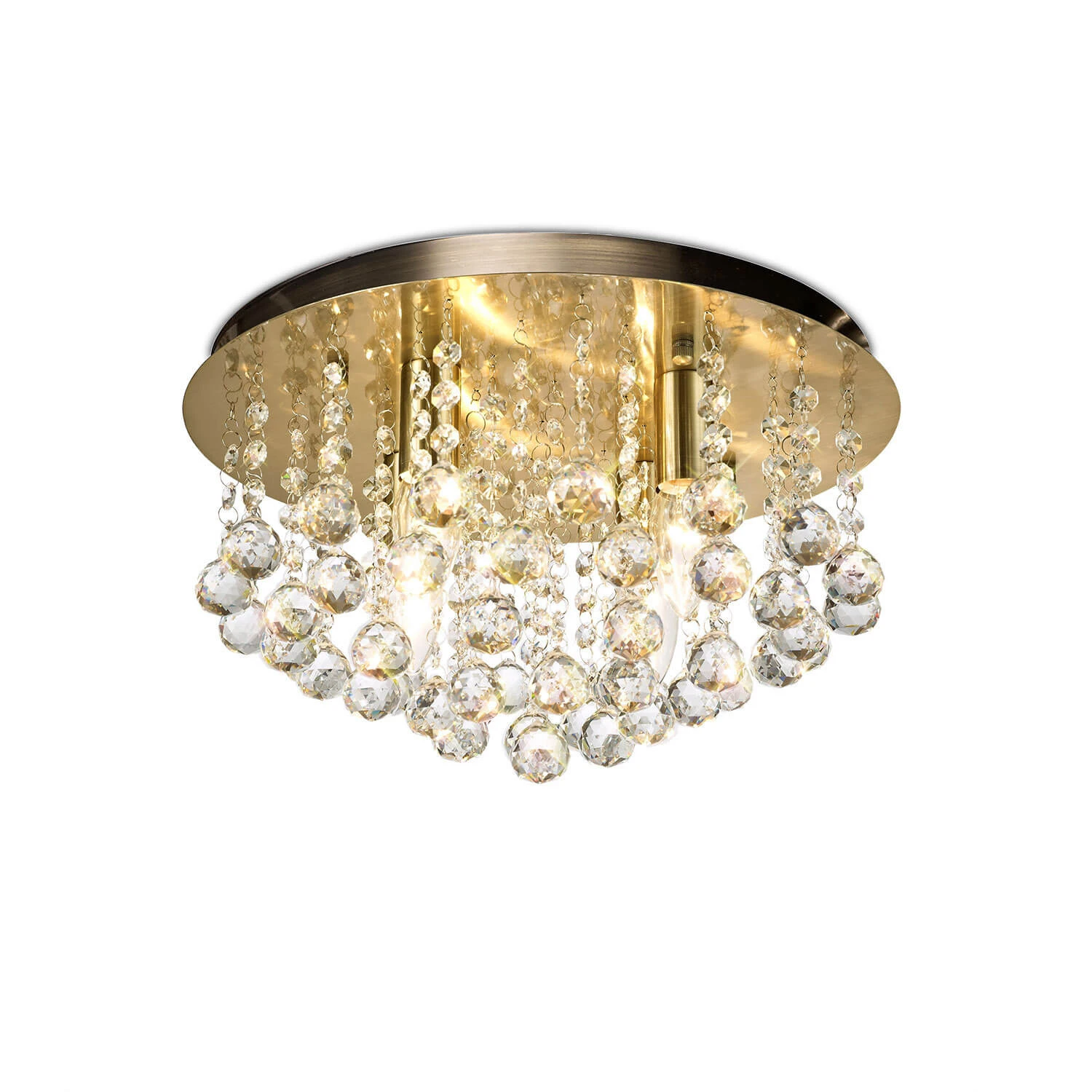 Featuring a polished antique brass ceiling plate and hanging crystals, the Acton Antique Brass & Crystal Flush Ceiling Light exudes glamour and elegance, adding a touch of sparkle to your room. Four individual bulbs are surrounded by hanging clear crystals, to create a beautiful reflective effect.
