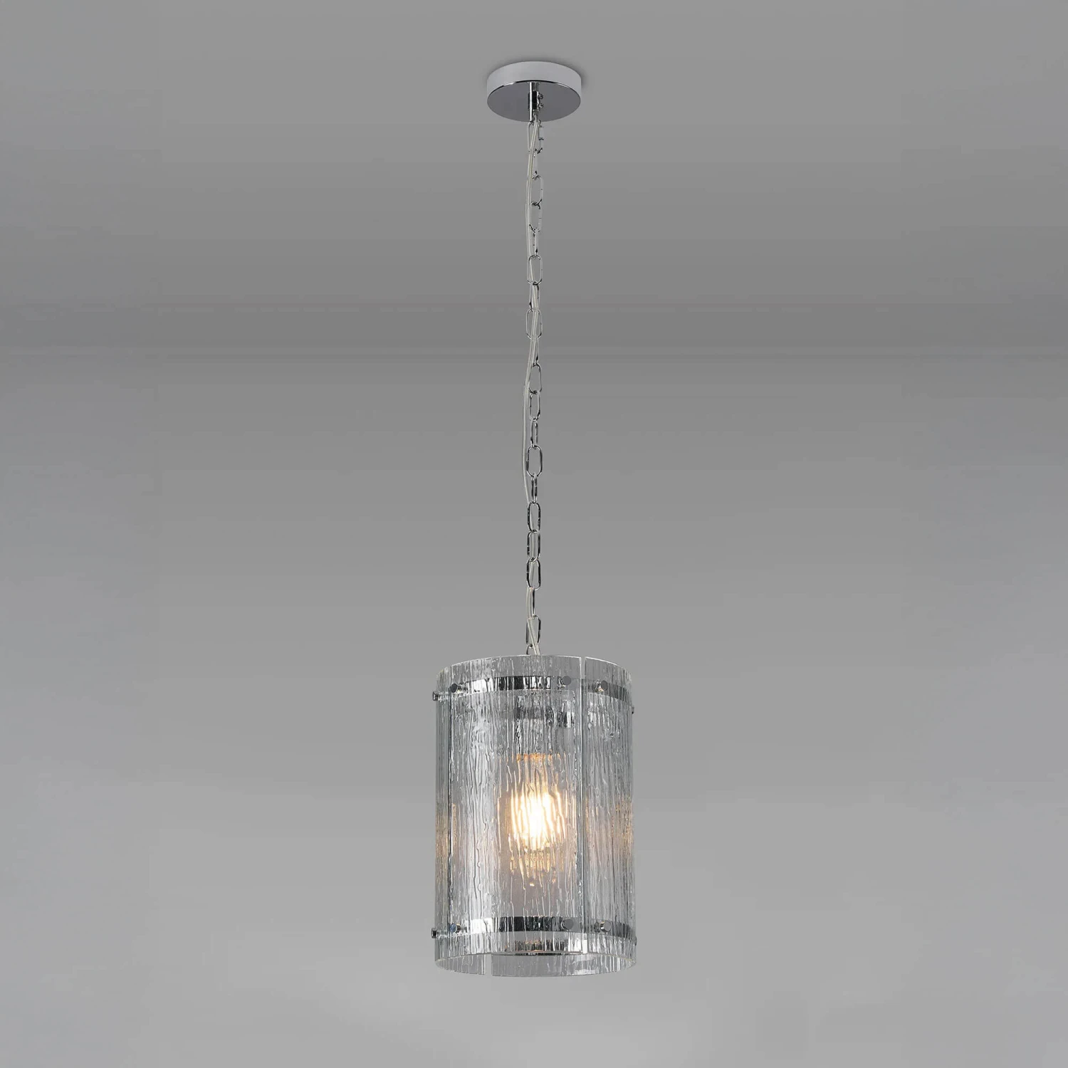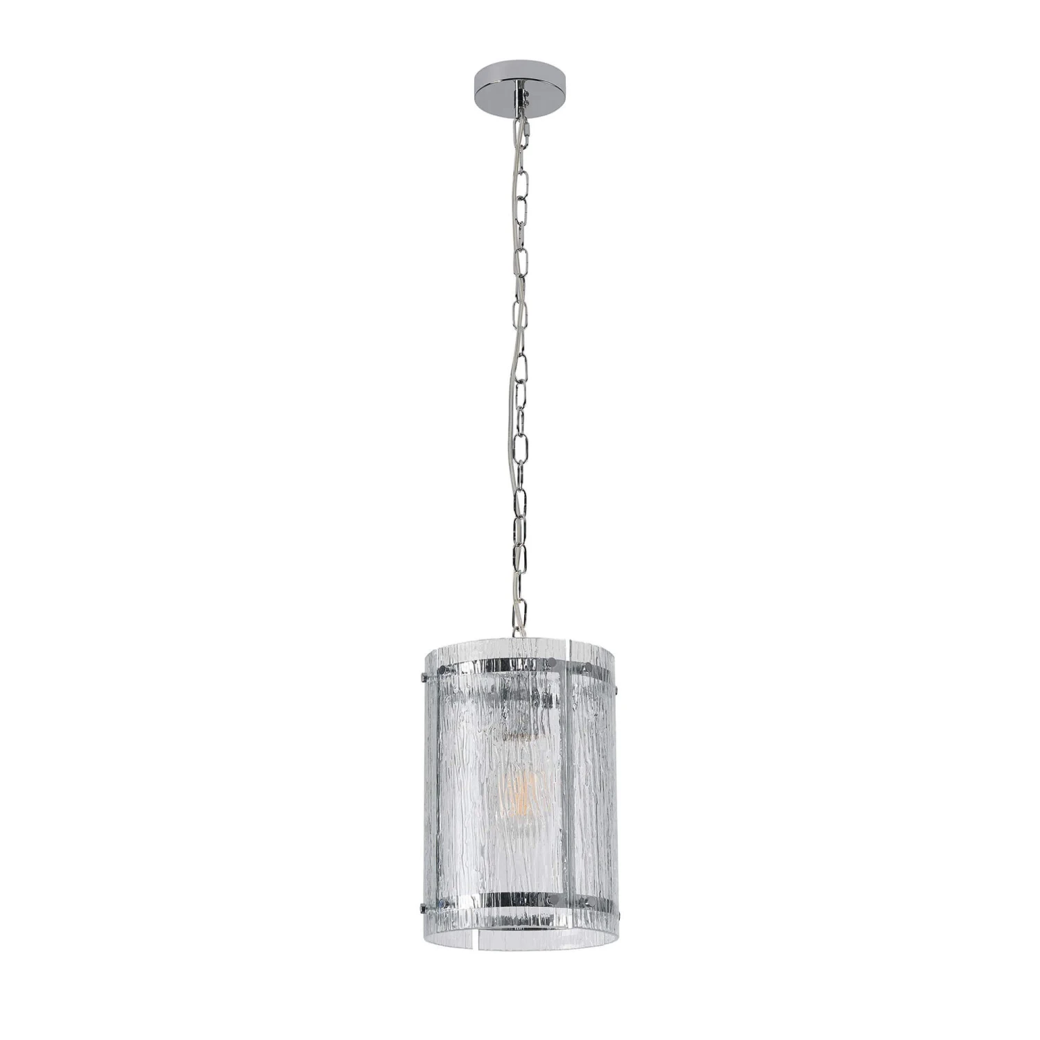 Alonza Polished Chrome & Clear Rippled Glass Pendant Light