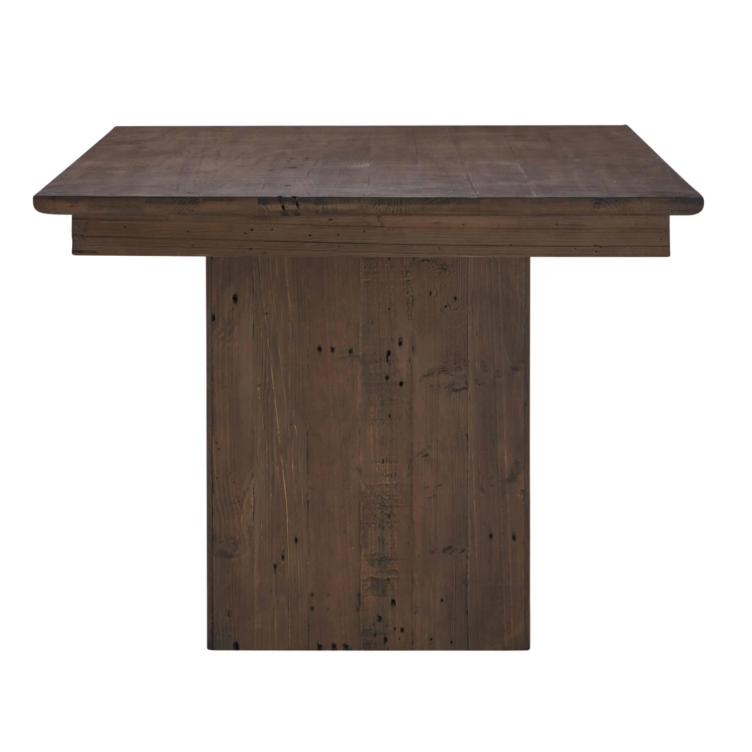A 180cm reclaimed wood dining table in a rich brown that combines rustic charm with modern design, making it an ideal centrepiece for any dining room. Crafted from natural wood, the rectangular fixed table measures 180cm and features a beautifully panelled design that showcases the unique wood grain, highlighting the character and warmth inherent in renewed wood tables. The dark wood tones lend a sophisticated depth, whilst the solid construction ensures durability and timeless appeal. The table’s distinctive reeded base adds a subtle yet striking texture, elevating the overall aesthetic.