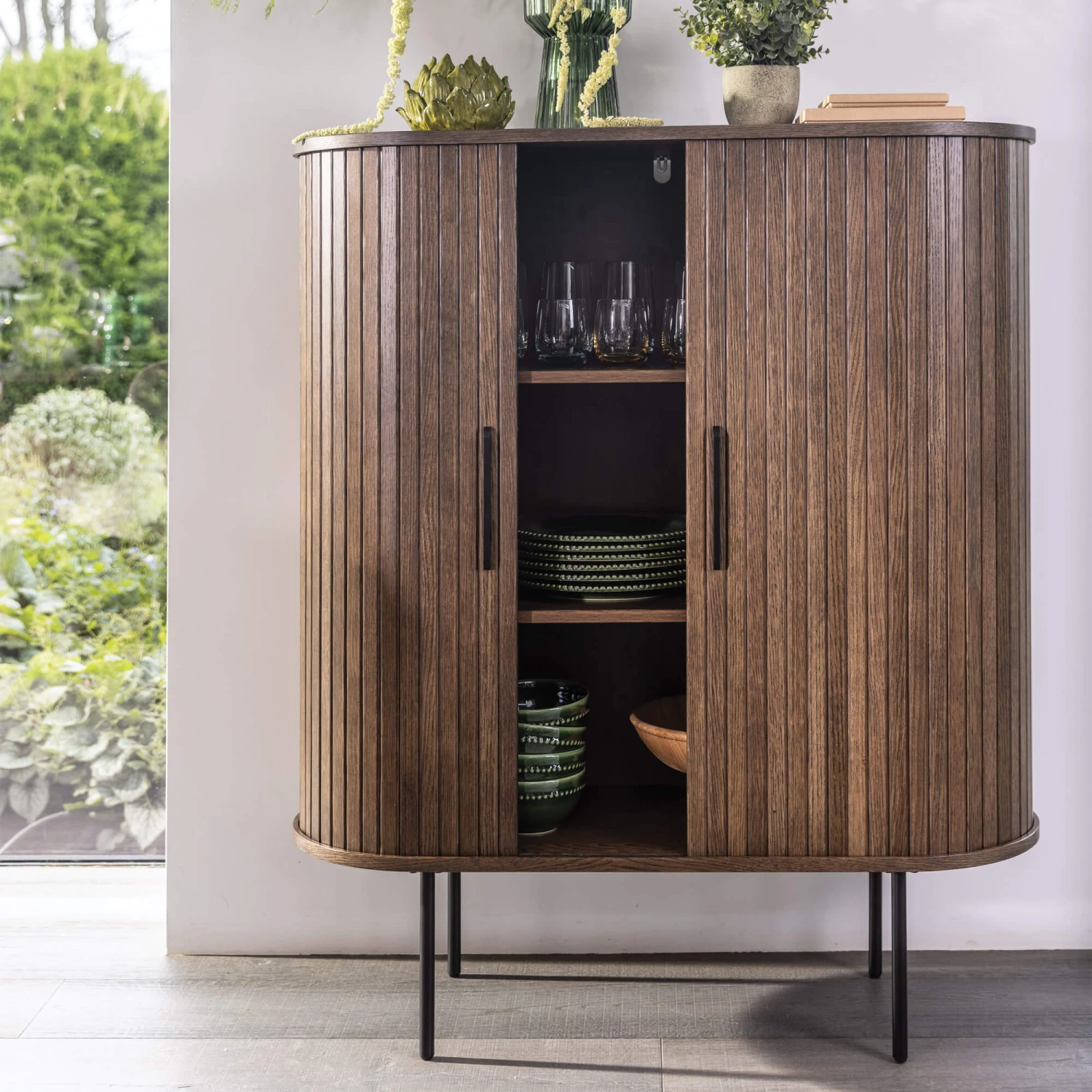 Combining the retro allure of mid-century design with industrial characteristics for a modern touch, the Annika Smoked Oak Slatted Sliding 2 Door Cabinet is sure to sit naturally within many existing interior styles. Made from a smoked oak veneer in a rich, warm brown tone, with a textural appearance echoing the grain and raw beauty of natural wood, the Annika has a certain charm. Signature slatted panelling on the main body of this piece further elevates its rustic appeal, whilst lending this cabinet its unmistakable character.
