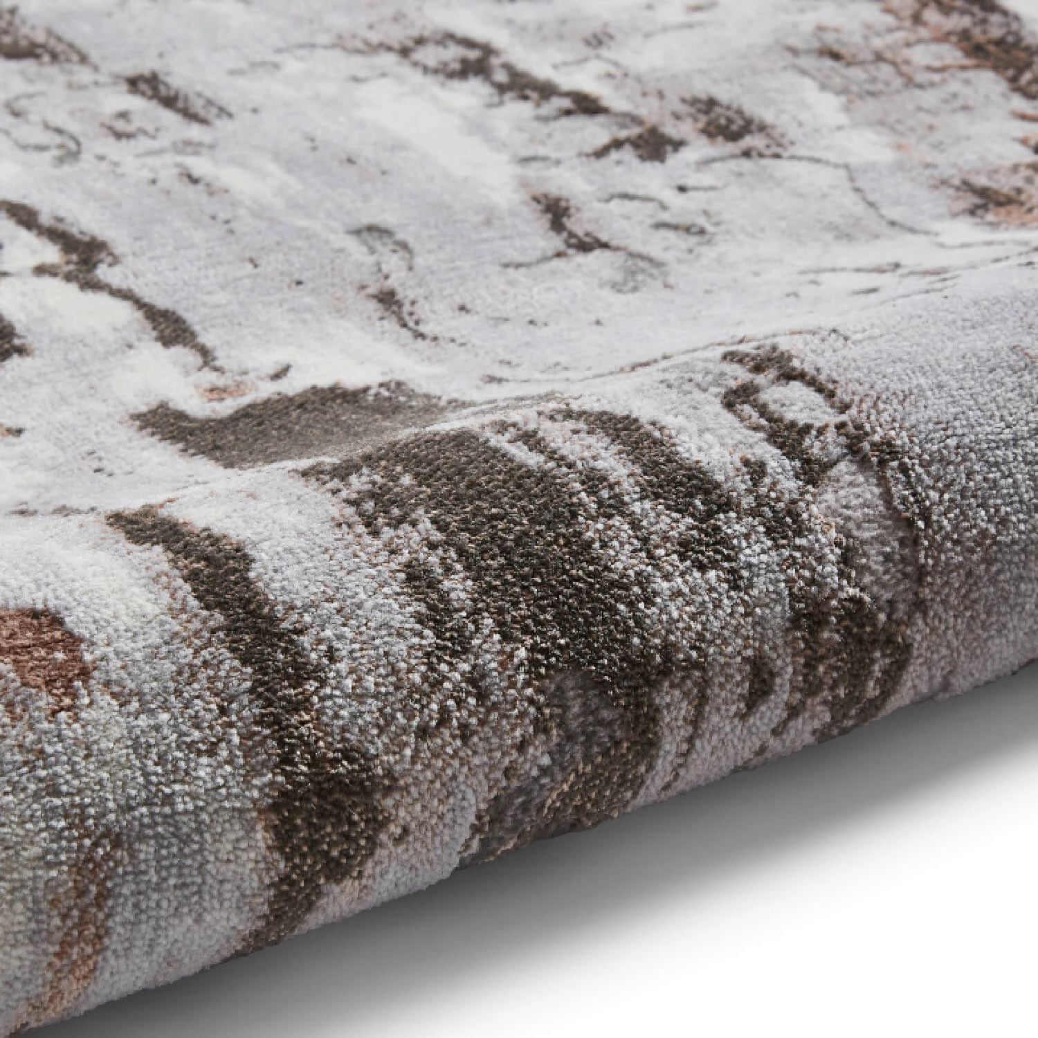 The Apollo collection uses a variety of textures and fibres to emphasise the modern, abstract designs. The polypropylene and polyester piles used in the machine-woven fabric give it a dense and supple feel, whilst further enhancing the luxurious design and three-dimensional texture, with subtle hints of rose pink upon a contemporary pale grey backdrop.