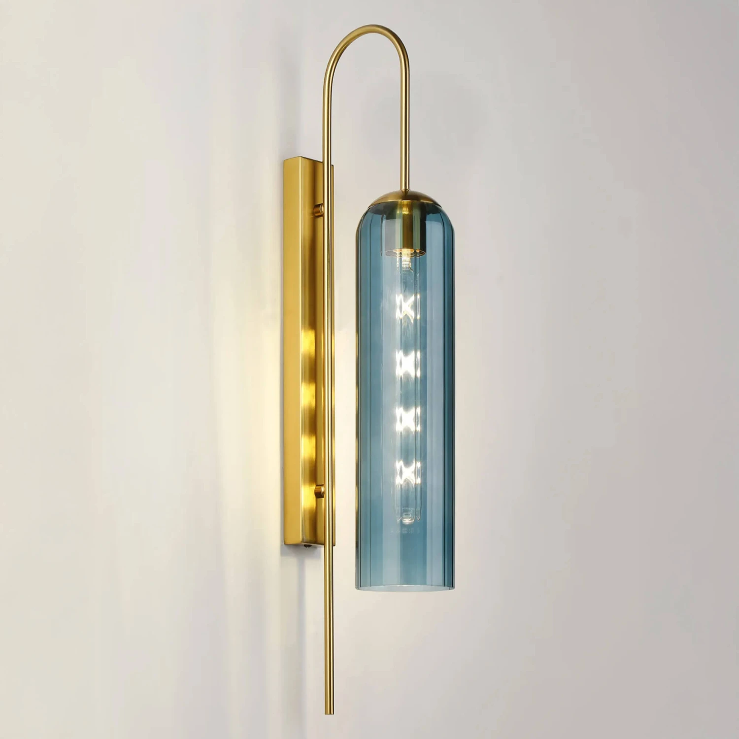 Ariah Blue Single Ribbed Glass Wall Light