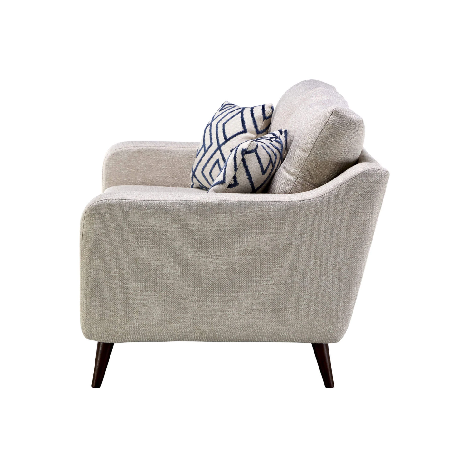 With its Scandi inspired, retro design, the Ariana Small Sofa has a distinctive, rounded silhouette and features a modern, curved arm profile which is covered with foam for enhanced comfort. Streamlined wooden tapered legs in a walnut finish complete the look, further enhancing the modern, yet retro infused aesthetic of the Ariana Sofa. Expertly crafted in the UK with the finest attention to detail, every element of the Ariana Sofa has been carefully considered to deliver a luxurious quality and exquisite design.