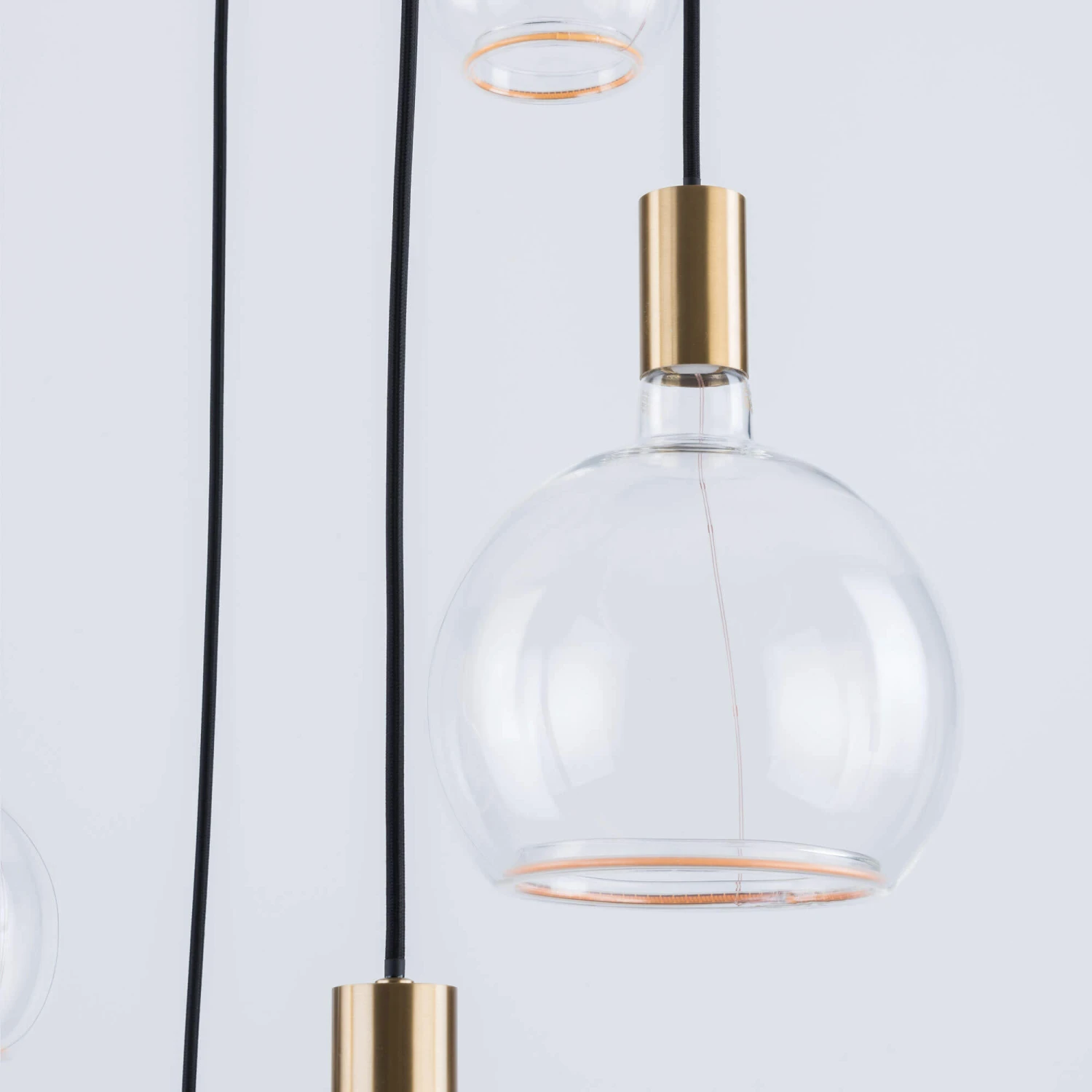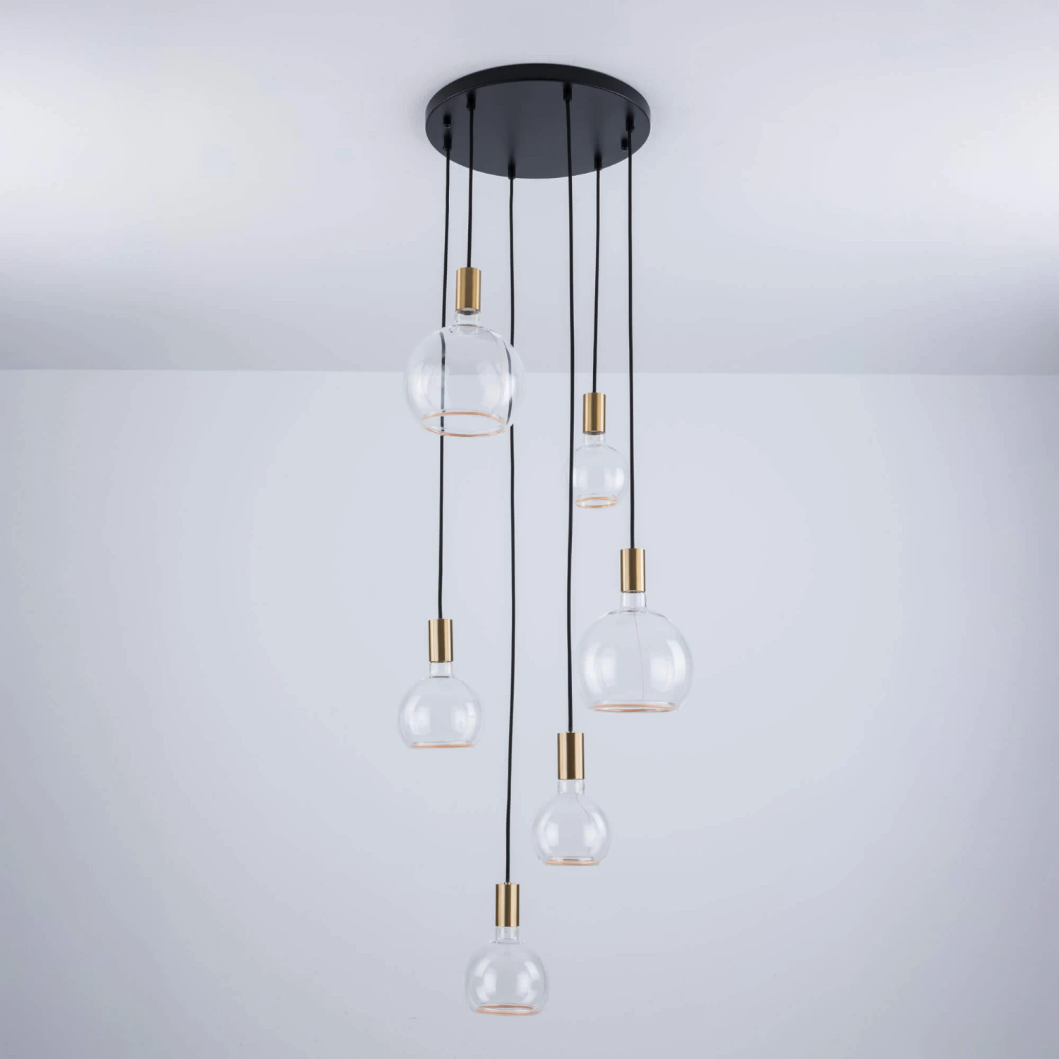 Create a stylish yet industrial style lighting for your home with this Aura Gold 6 Light Ceiling Plate. Made from metal, this striking pendant light ceiling plate features a black round base with six sleek gold light bulb fittings. Offering style and functionality, it can be arranged in a random or spiral design. Available in various sizes, this sophisticated pendant light ceiling plate is perfect for making a statement and elevating any room with its unique and contemporary design, making it ideal installed above a staircase or dining table.