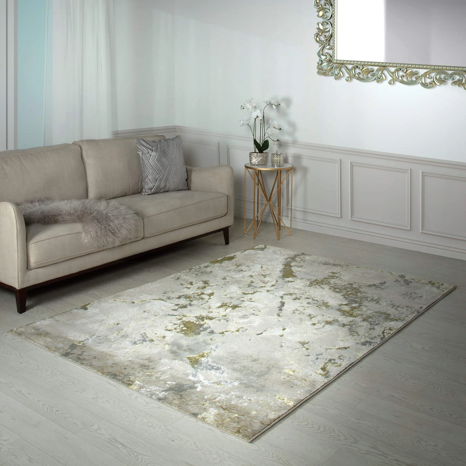 This expertly crafted rug uses a luxurious polyester and polypropylene mix with a dynamic abstract patterning. The elegant Aurora rug has been machine woven from high quality materials with an innovative design and metallic accents which provides texture and detail.