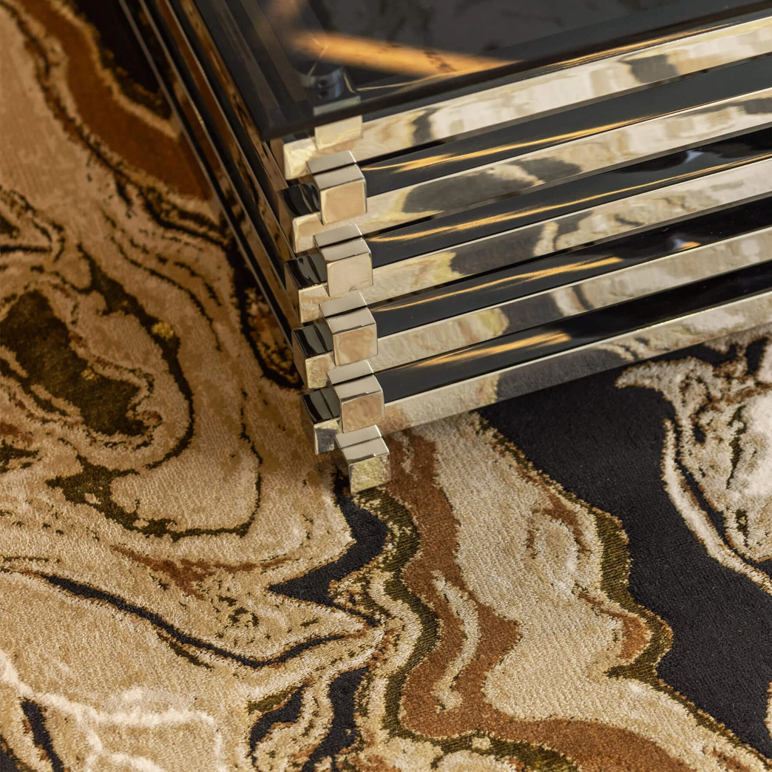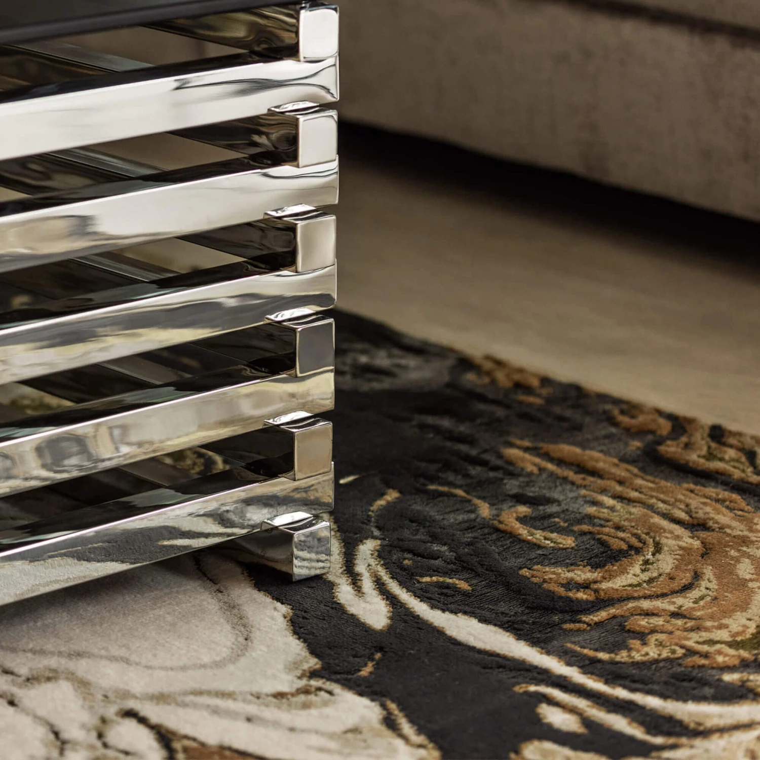This expertly crafted rug uses a luxurious polyester and polypropylene mix with a dynamic abstract patterning. The elegant Aurora rug has been machine woven from high quality materials with an innovative design and metallic accents which provides texture and detail.