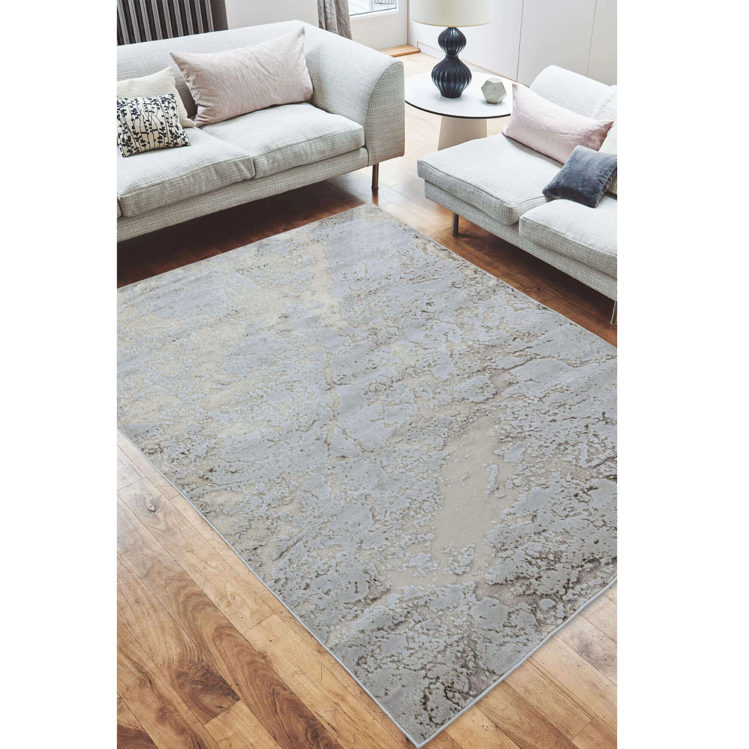 This expertly crafted rug combines a polyester and polypropylene mix with a dynamic abstract patterning and high shine fabric. The elegant Aurora Strata rug has been machine woven from high quality materials with an innovative design, suitable for anywhere in the home