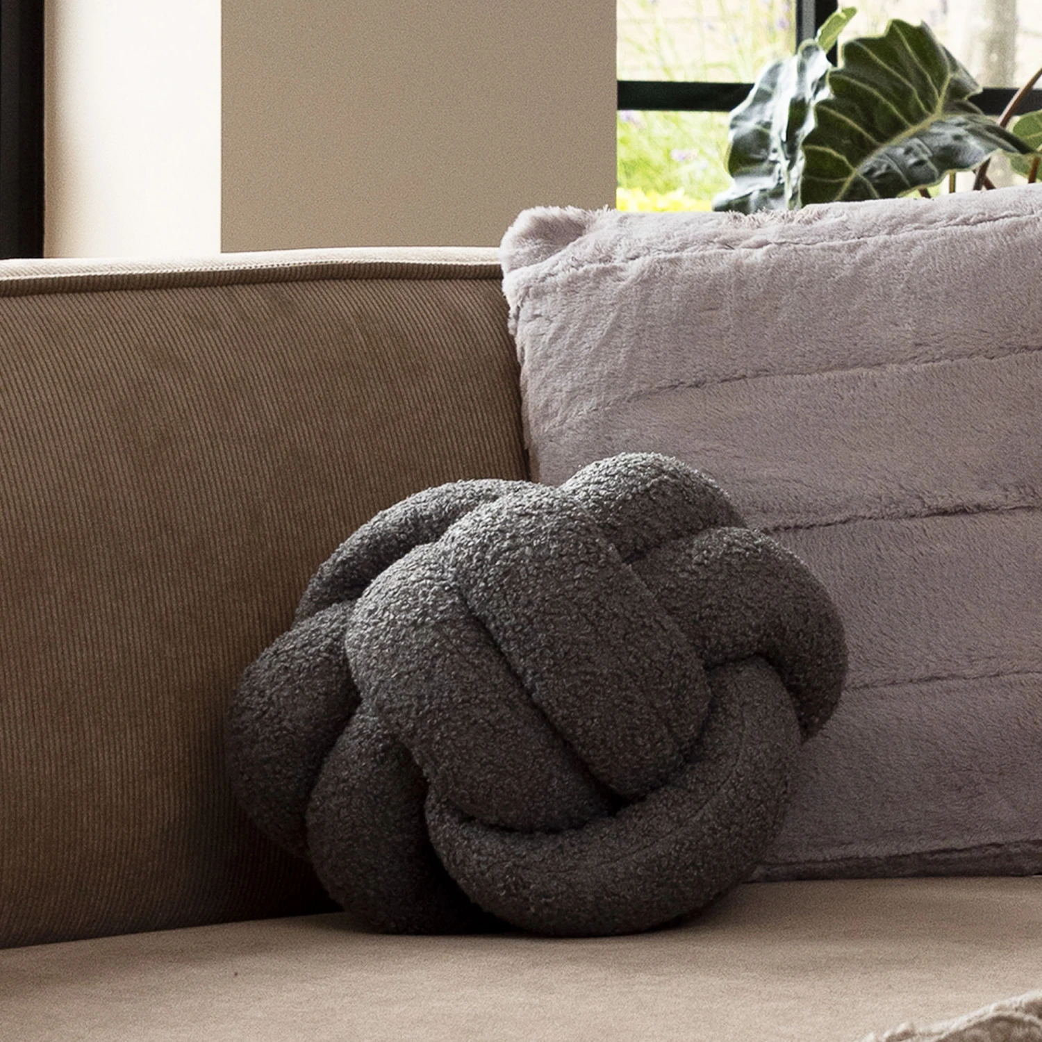 Boucle Fleece Charcoal Knot Cushion