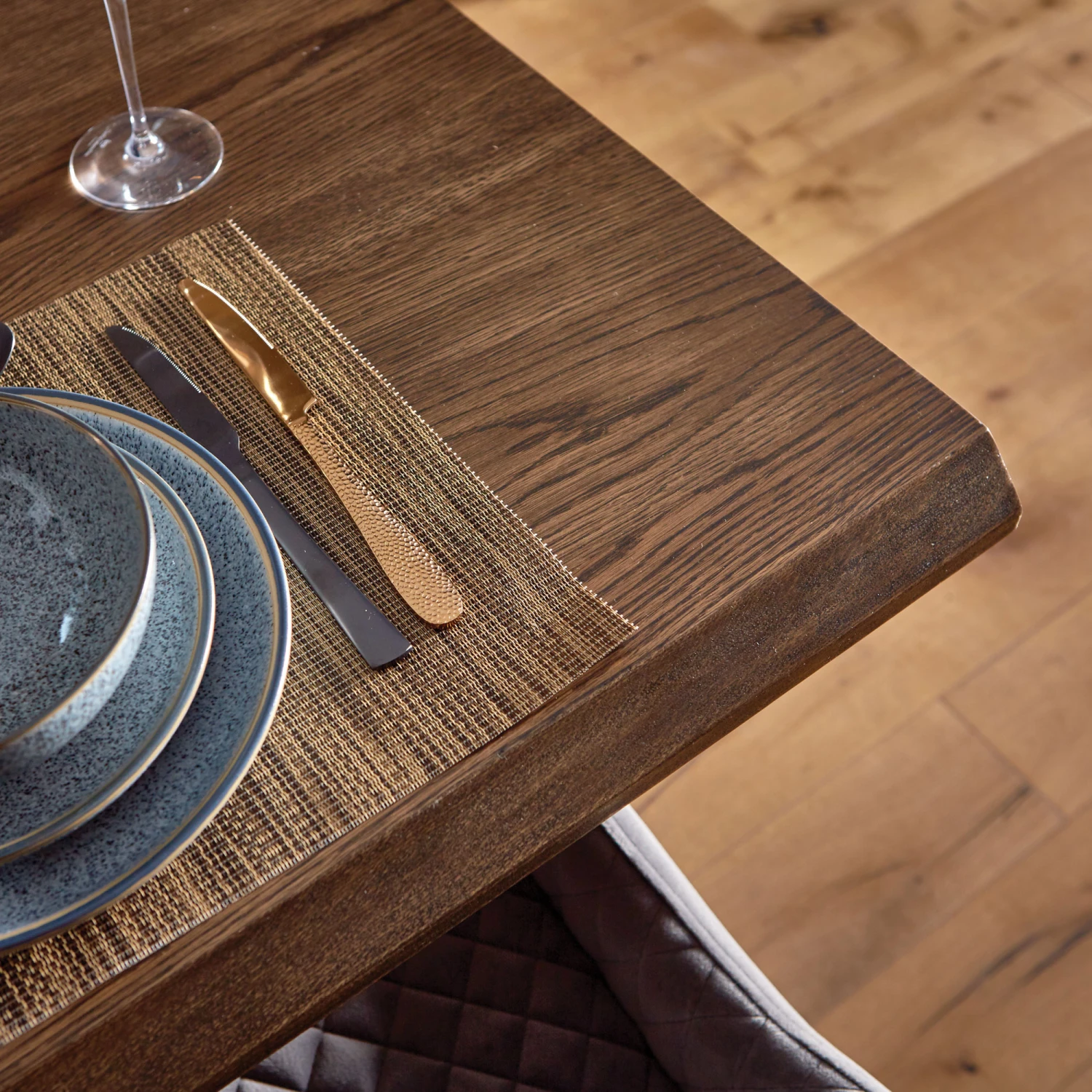 The Bronx Rectangular Dining Table has a fixed top and can comfortably seat up to 6 guests. The table top is supported by a stylish ‘X’ shaped metal construction which creates a structural and aesthetically striking feature. Finished in black metal, the base works to enhance the natural tones of the table top whilst adding to the industrial feel. This dining table is perfectly complimented by many of our beautiful dining chairs, particularly the Toby collection.