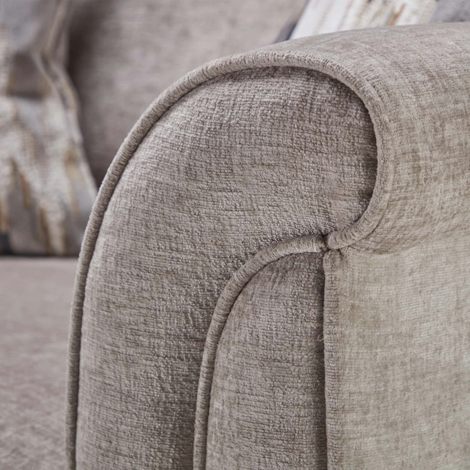 With smooth lines and geometric shapes inspired by the interiors of the art deco era, the Buxton Snuggler Sofa will add an enduring and sophisticated touch to any home. Combining luxurious comfort with opulent sophistication and style, upholstered in a sumptuous grey fabric with geometric accents, in a palette of complementing metallic hues. Handcrafted in Britain, the Buxton sofa inherits the hallmarks of high quality, meticulous detailing that we associate with the best of British manufacturing. Gently curved armrests give a classic feel to the sofa, whilst detailed solid oak legs with satin nickel castors complete the timeless aesthetic beautifully.
