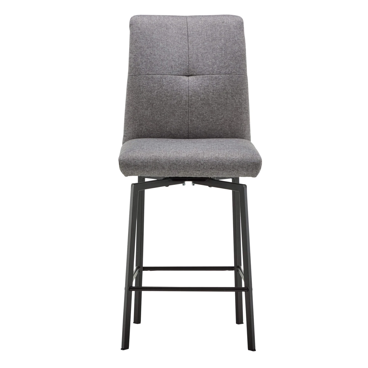 The Cabley Swivel Counter Bar Stool is upholstered in a soft fabric that enhances its contemporary design. Its gently contoured backrest subtly curves backwards at the top, offering both style and ergonomic comfort. A refined piped edge frames the backrest, while distinctive plus-shaped tufting in the centre of both the backrest and seat creates four clearly defined squares, lending an elegant, structured detail to the stools’ silhouette. The seat itself is well padded, ensuring supportive comfort.