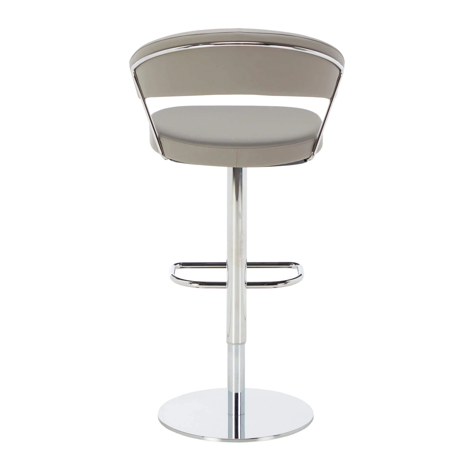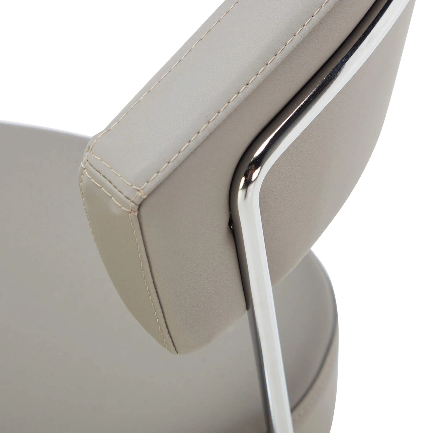 The Calligaris New York is a stylish swiveling bar stool with a chromed, adjustable gas-lift base. The seat has been upholstered in soft leather look fabric in a simple and clean, taupe colour and is a beautiful contrast to the round chrome base with built in footrest. These stools are very comfortable with a soft seat and wrap-around backrest, making them ideal for a number of uses.
