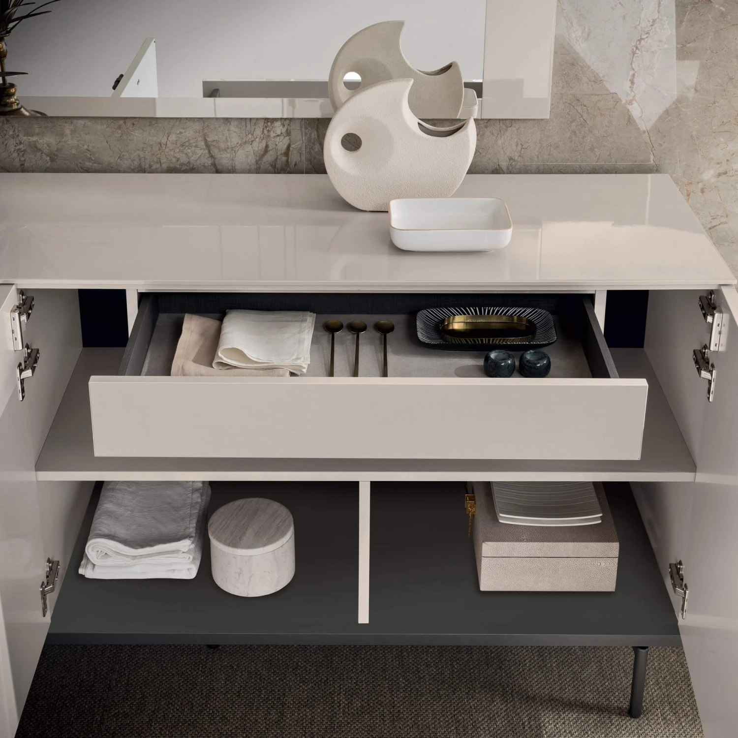 Radiating with style and sophistication and perfect for bringing an element of modern-day luxury to your home, the Caren High Gloss Pearl Line 214cm 3 Door Sideboard is contemporary elegance at its finest. Designed in Italy and defined by etched, vertical panel detailing on the front, every piece in the Caren dining range exudes class and has a certain character and charm, with its unique, artistic features.