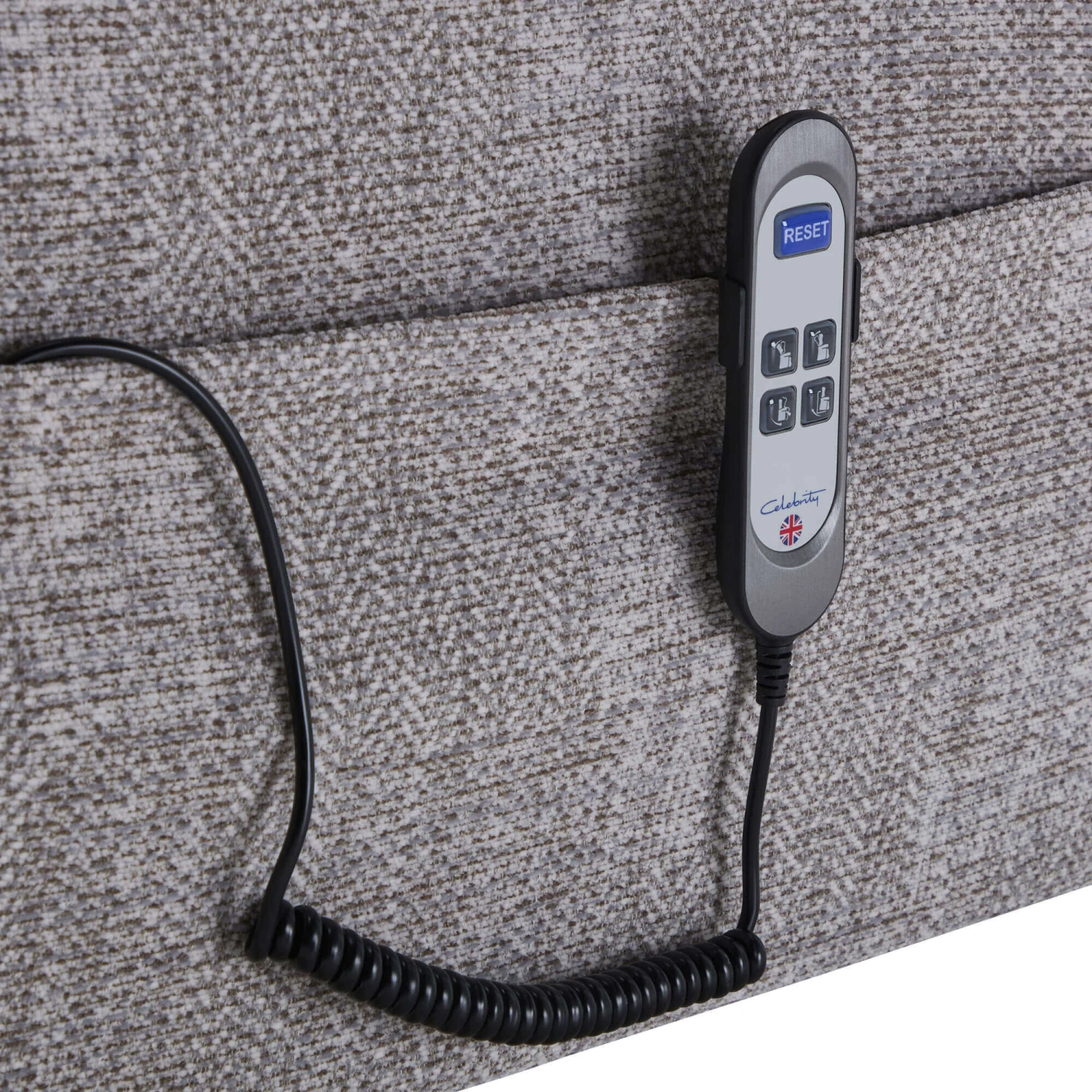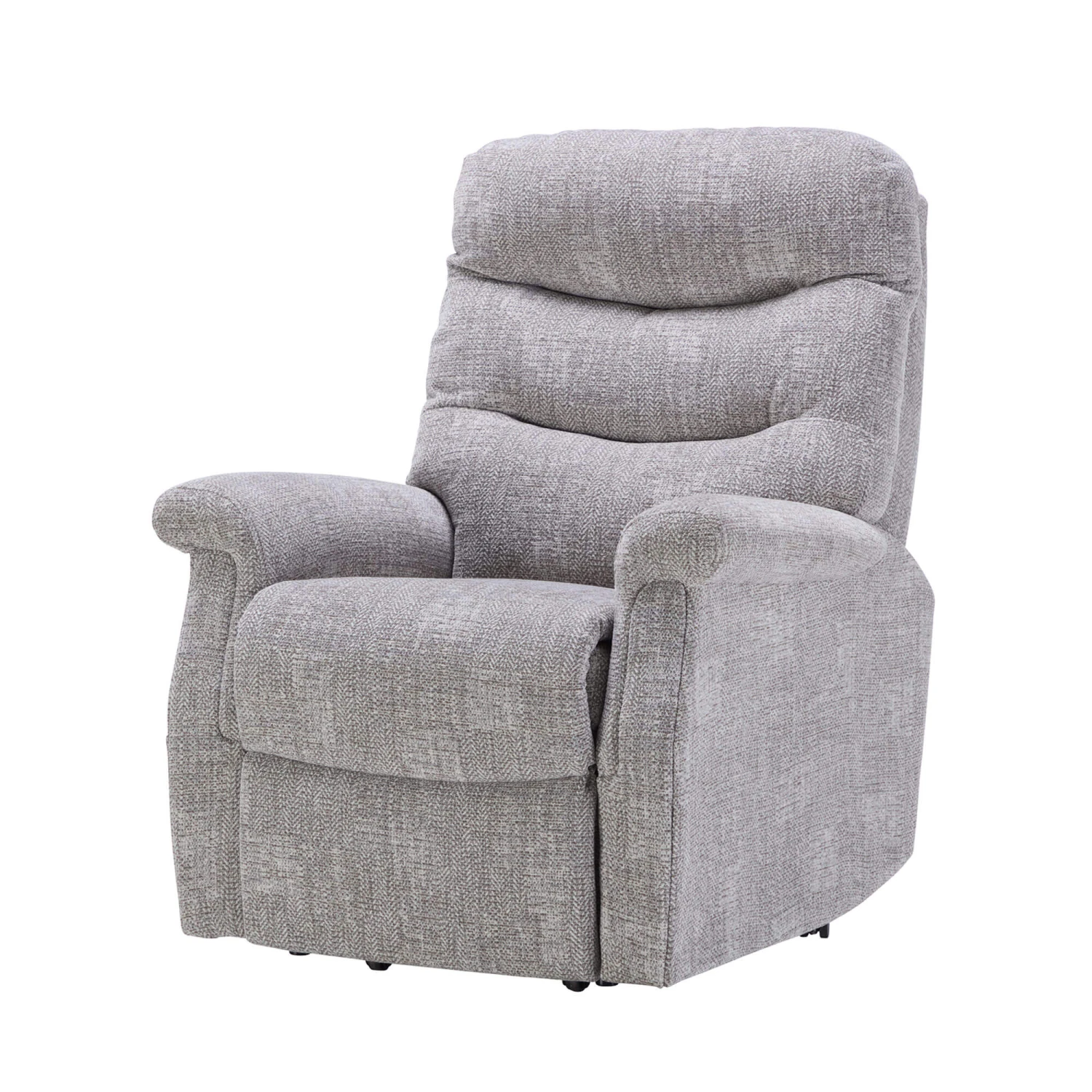 The Hollingwell Pebble Grey Fabric Grande Dual Lift & Rise Recliner Chair from Celebrity boasts ultimate comfort and style. Upholstered in a pebble grey fabric, the Hollingwell features sloped, padded armrests with softer arm detail, a high back and black castor feet, creating a welcoming and sophisticated piece.