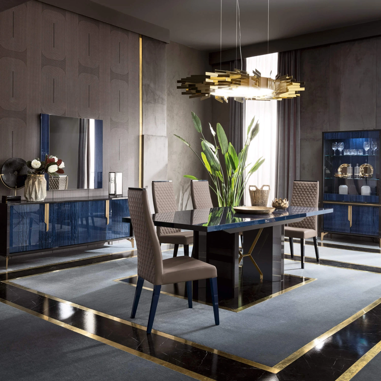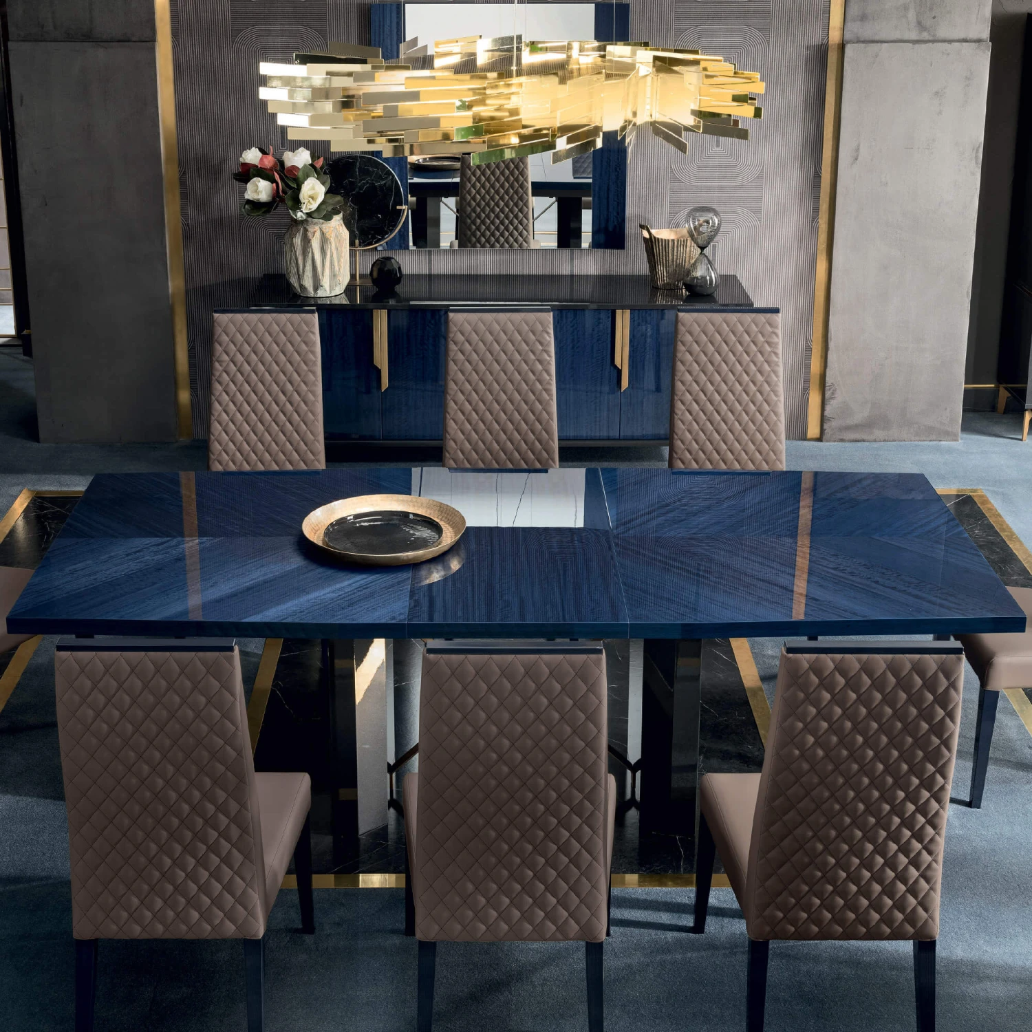 Designed to be noticed, the Celeste High Gloss Cobalt Blue Dining Set has a certain presence and is sure to make an impression in any home, with its exquisite, statement features and stand out design that cannot be ignored. Expertly crafted in Italy, from the finest materials with an impeccable attention to detail, the Celeste is an artisan range to be admired. Bold cobalt blue tones combined with brushed brass accents define this dining set and form a visually striking yet elegantly refined design, which is sure to stand proud in any setting.