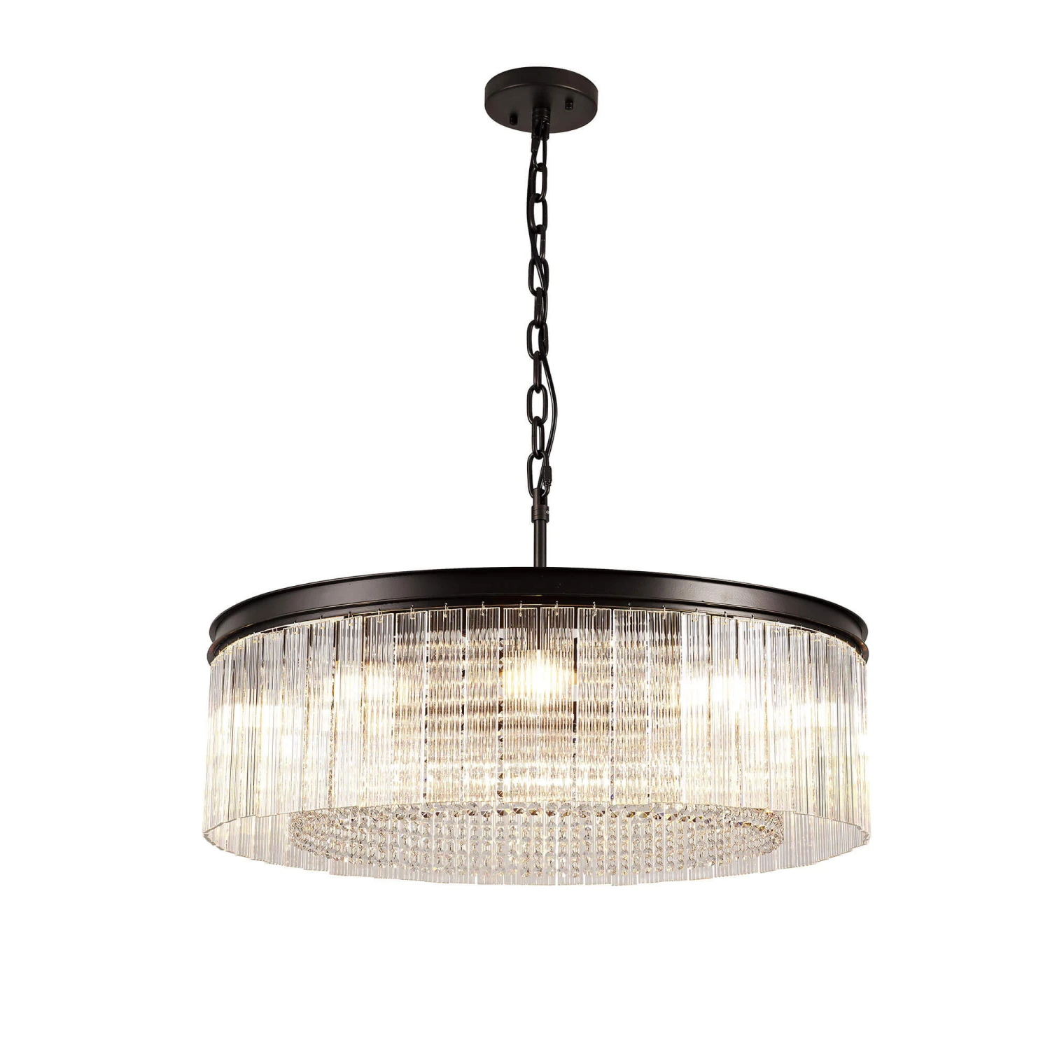The Chieti Large Round Pendant Light exudes glamorous style and elegance. Illuminable by ten E14 LED bulbs, this exquisite pendant light features a round dark brown oxide finish iron framework with tiered rings of clear crystal and glass pieces. Adjustable in height from 51cm to 150cm, this stunning pendant light will complement any modern interior.