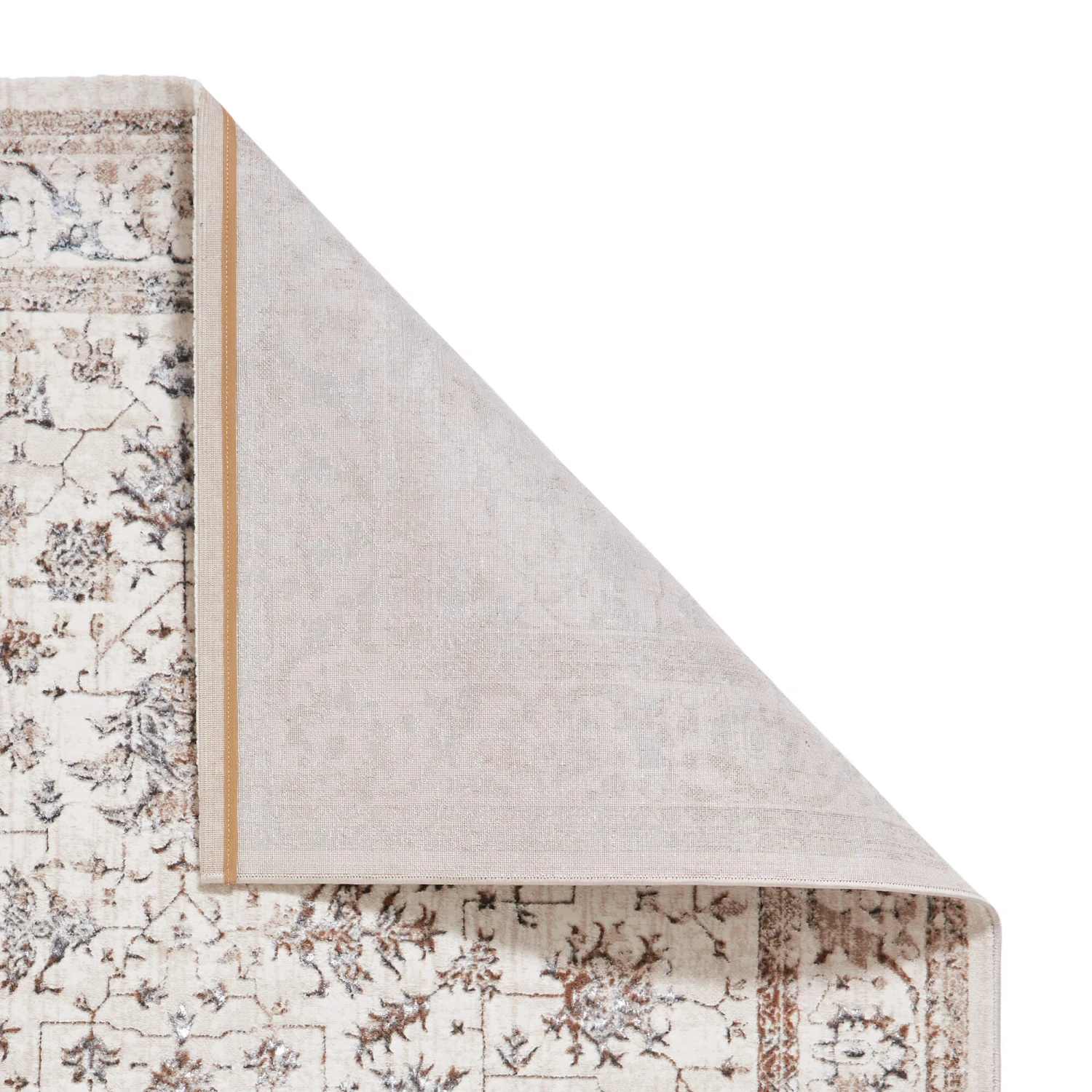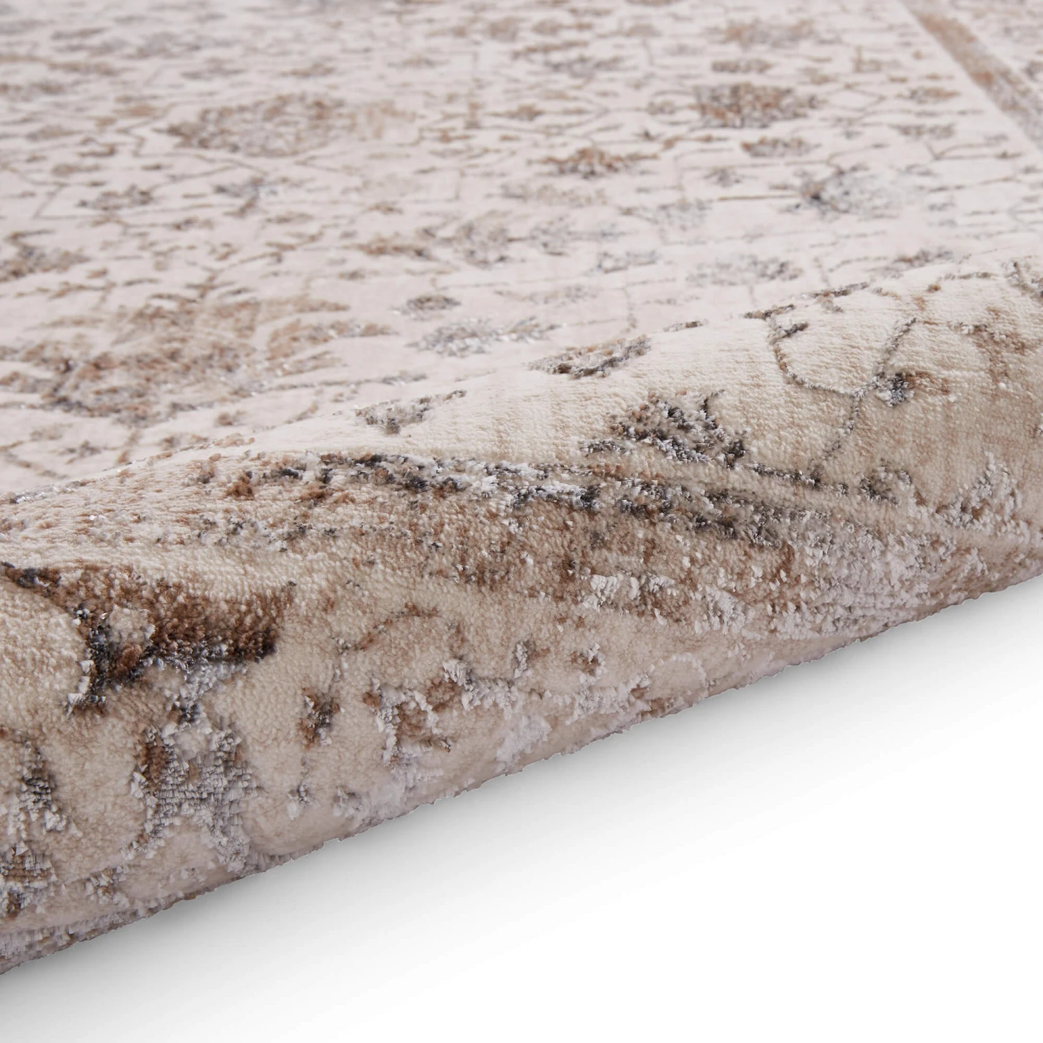 Evoke comfort in any space with a large tasteful rug. The rugs traditional design ensures timeless allure whilst the stunning silver and beige tones create a chic space.