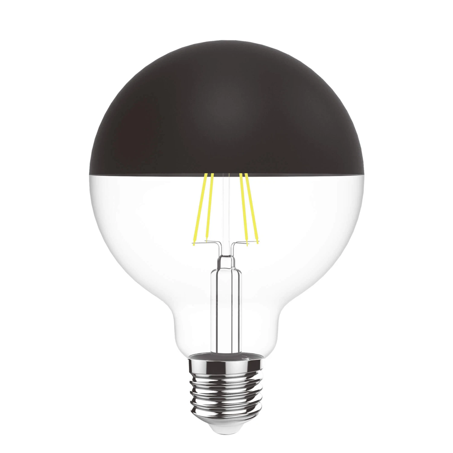 This unique, vintage inspired globe bulb is topped with a matte black metal coating for a unique look. Ideal for styling bare without a lampshade, for an industrial aesthetic.