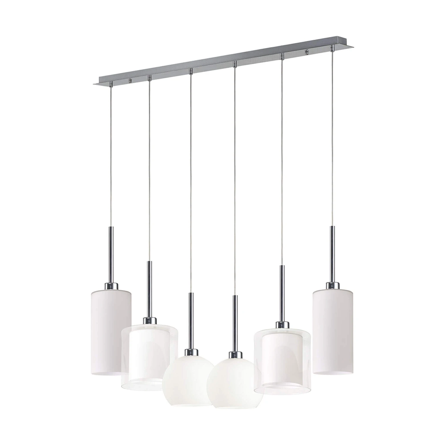 Delia Polished Chrome 6 Light Bar Pendant With Opal & Clear Glass Shades