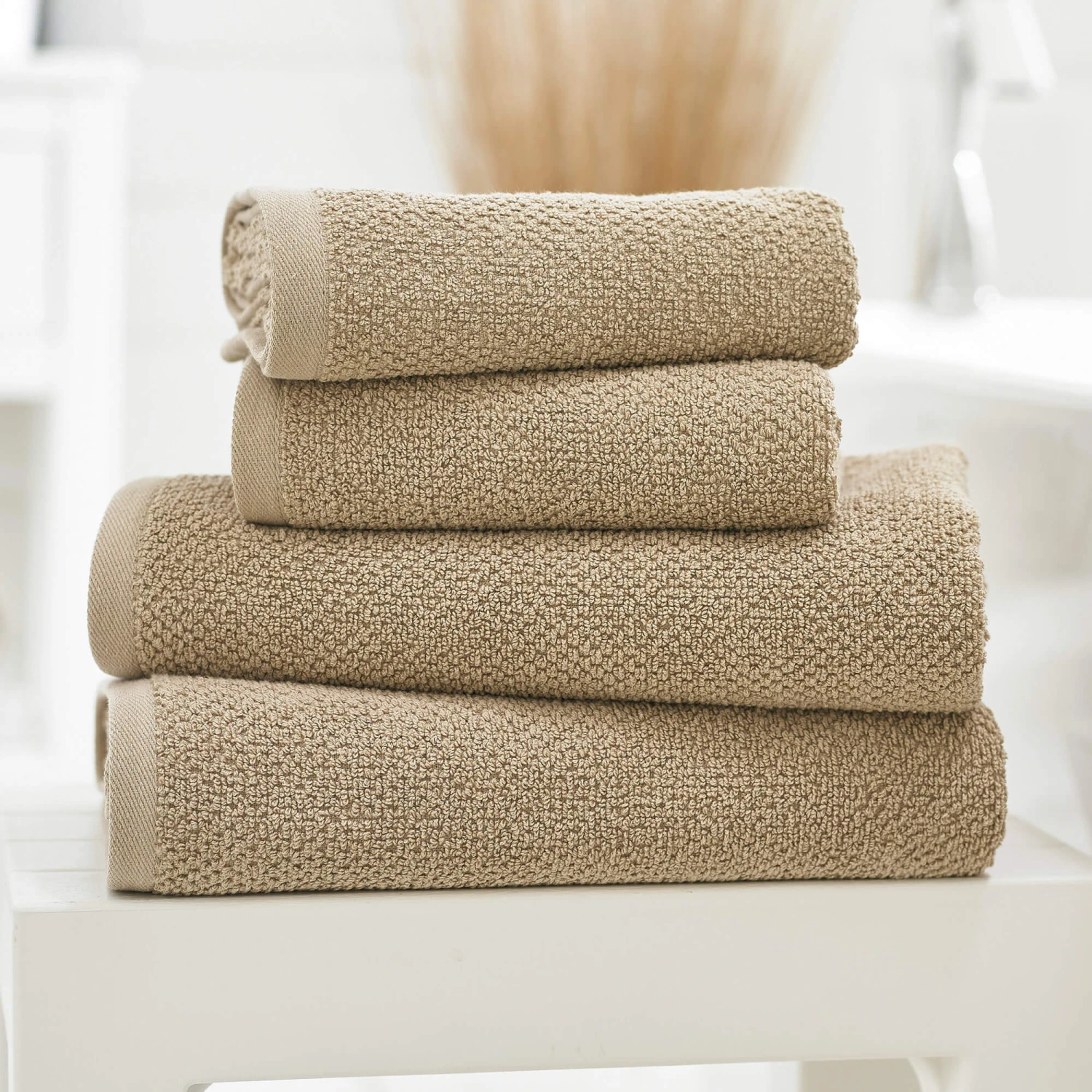 The Deyongs Riverdale Taupe Bath Towel is crafted from pure, soft cotton renowned for its exceptional absorbency and durability. With a luxurious 550gsm weight, a sophisticated boucle textured weave and a tightly woven flat dobby border, the towel is a wonderful addition for any bathroom space.
