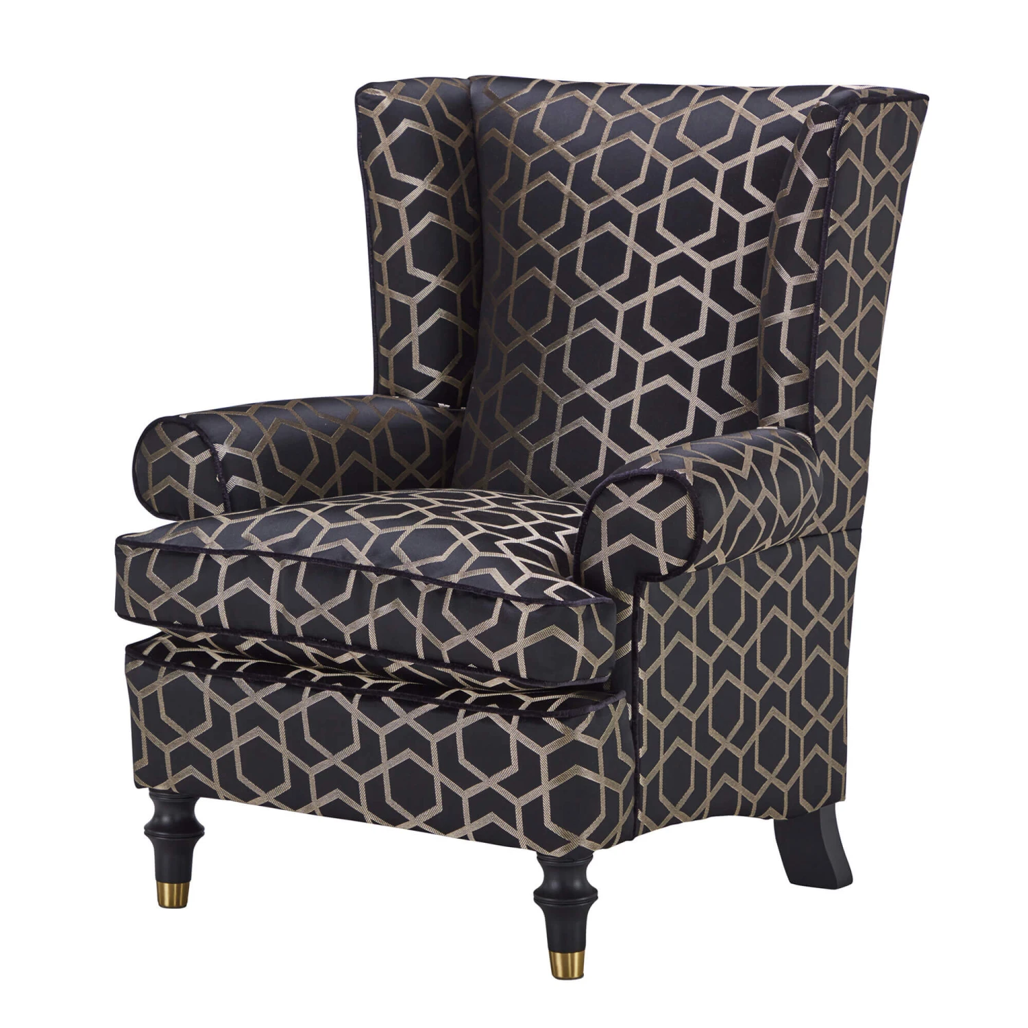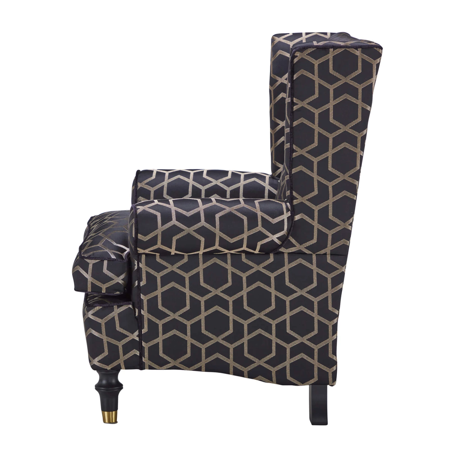 Add a touch of grandeur to your home with the Harvard Fitzgerald Black & Gold Fabric Wing Chair from Duresta. Upholstered in a Fitzgerald black and gold patterned fabric, the Harvard wing chair features a deep, luxurious seat, traditional scroll arms, contrasting Monarch black piping and removable umber wood with brass metal feet, creating a beautifully elegant and soft piece to offer the most comfort yet stylish seating experience.