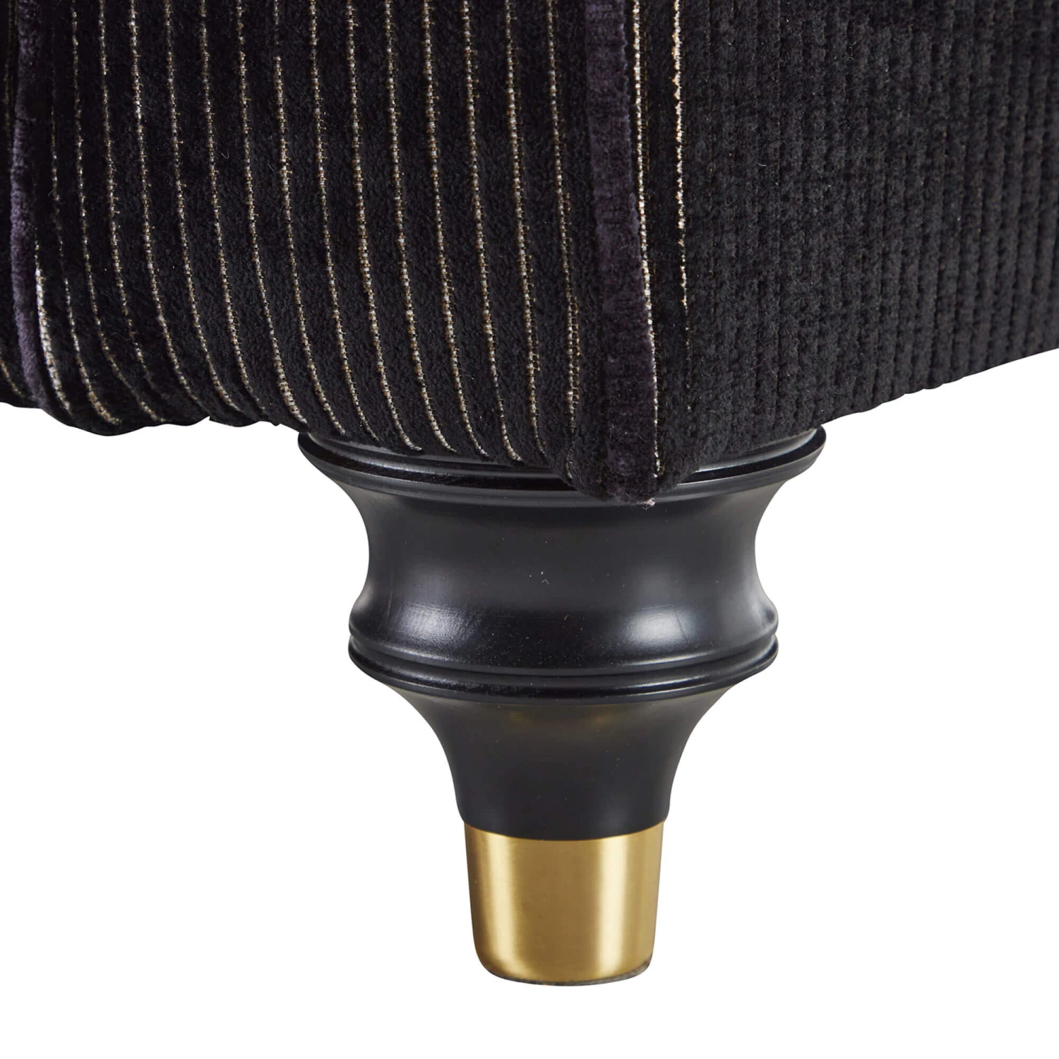 Accompanied with one large scatter cushion in a Fitzgerald black & gold pattern fabric and one plain pinwheel cushion in a Kashmir gold fabric, they add character and depth to the Harvard reading chair by effortlessly enhancing its overall luxurious and glamorous aesthetic, making it the perfect addition able to sit proudly within any home thanks to its poised and sophisticated appearance.