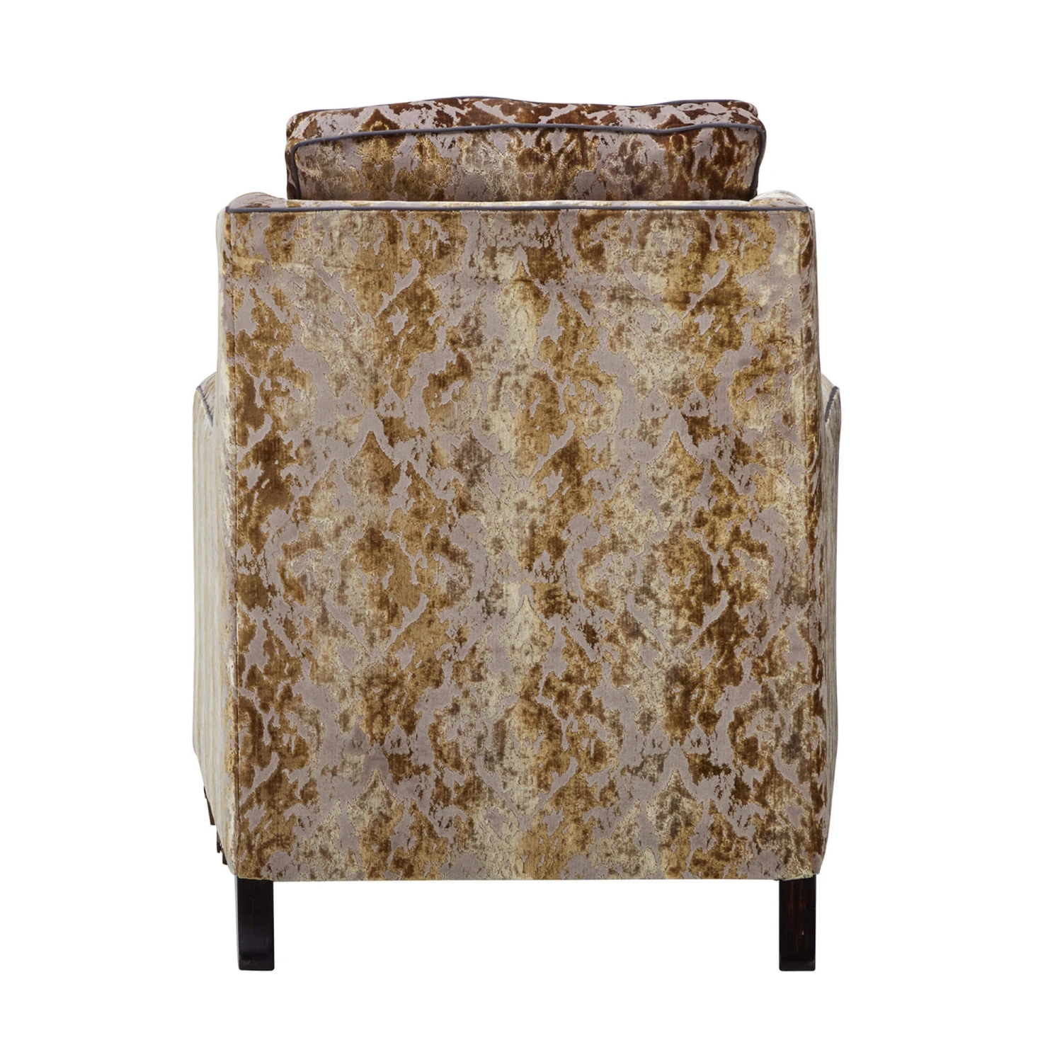 Accompanied with a small scatter cushion in a plain Byzantium gold fabric complemented by a contrasting Grosgrain grey piping, it adds elegance and texture to the Horatio armchair by effortlessly enhancing its overall extravagant aesthetic, making it perfect placed in a traditional or contemporary home interior.