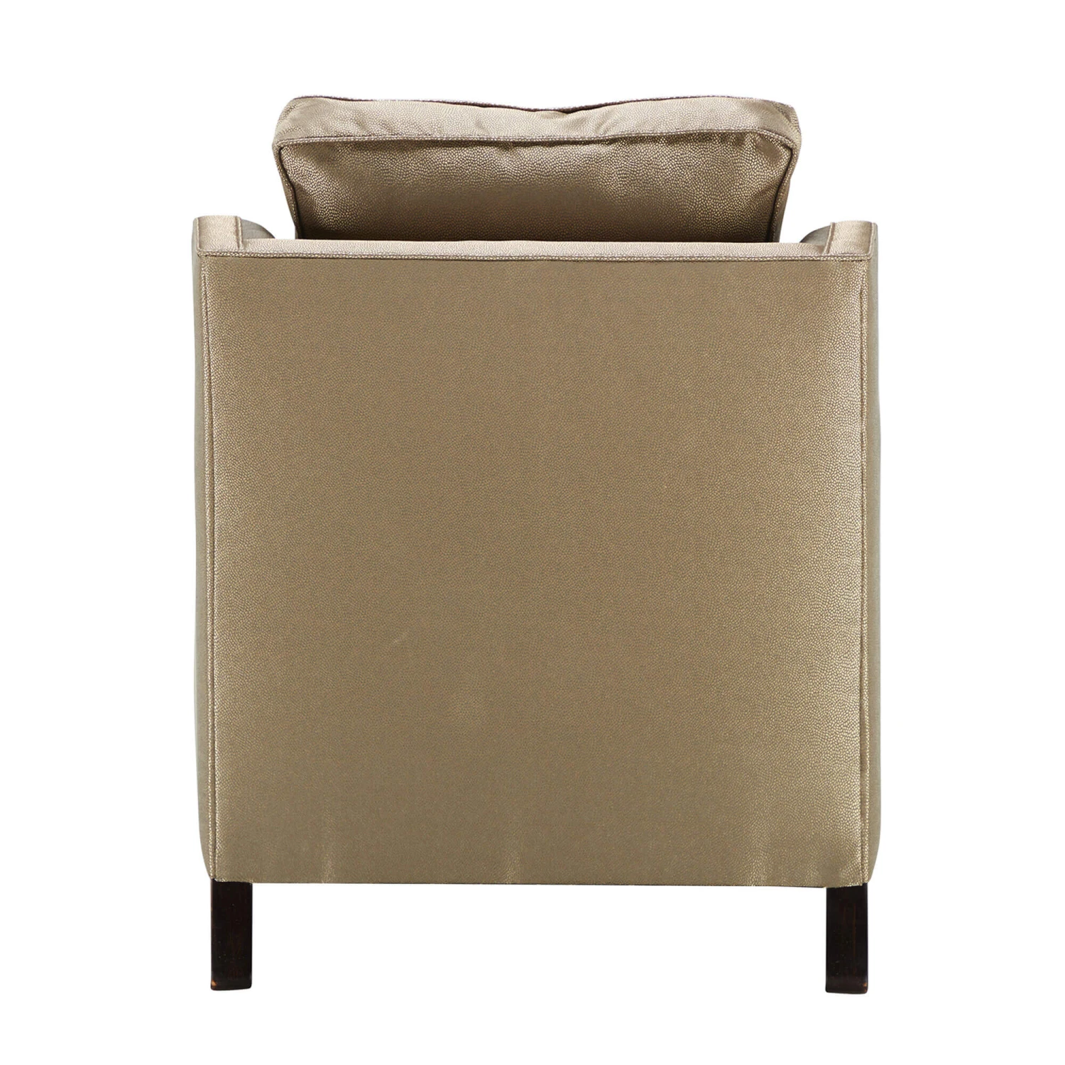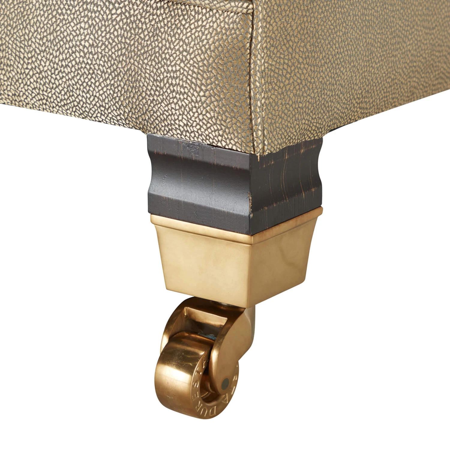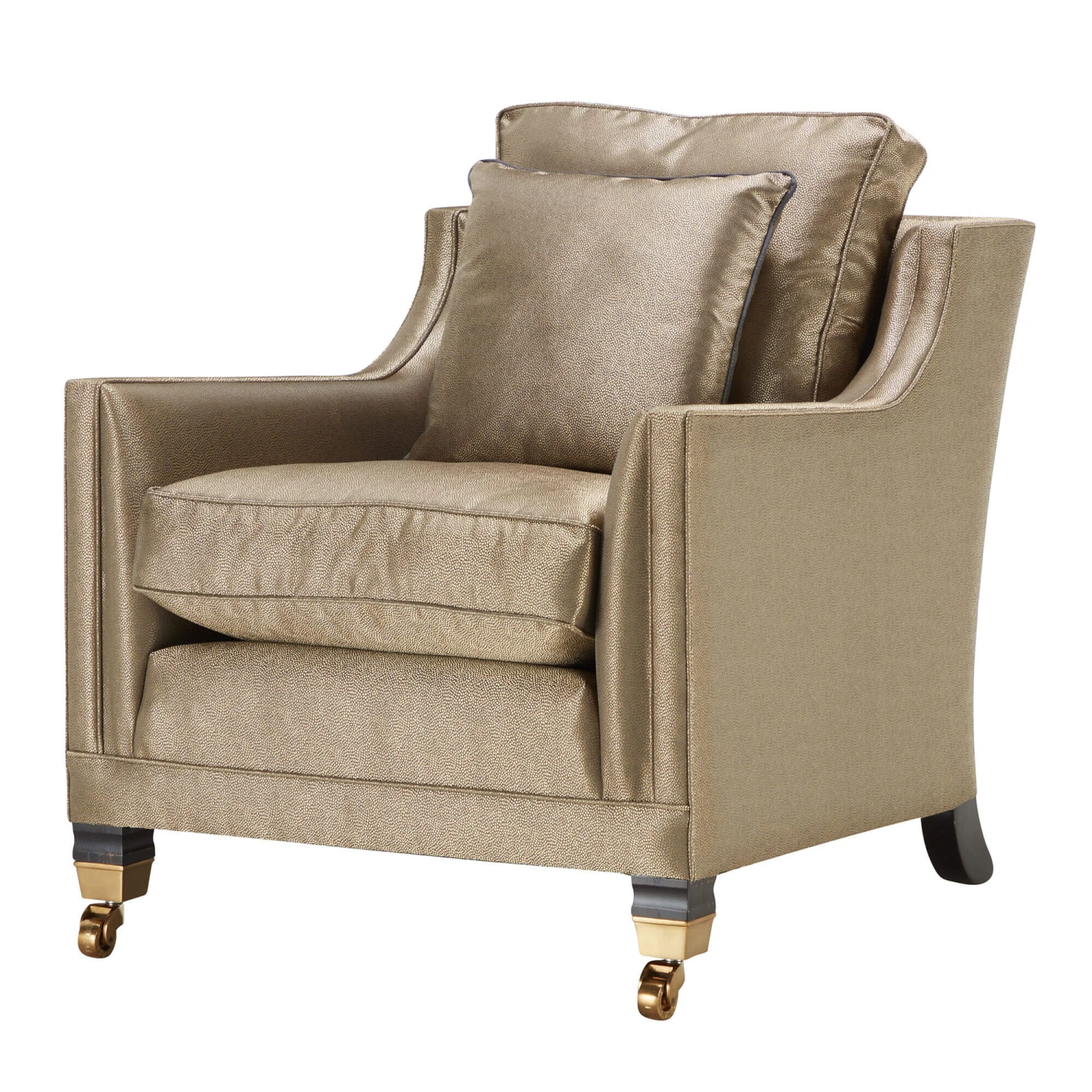 The Trafalgar Byzantium Gold Fabric Armchair from Duresta boasts a wonderfully classic English styling. Upholstered in a luxurious Byzantium gold fabric, the Trafalgar armchair features an all-over weave pattern, a coordinating scatter cushion, self-piping and umber wood with antique brass metal castor feet, creating a beautifully traditional and opulent design that has been carefully reinvented to stand the test of time.