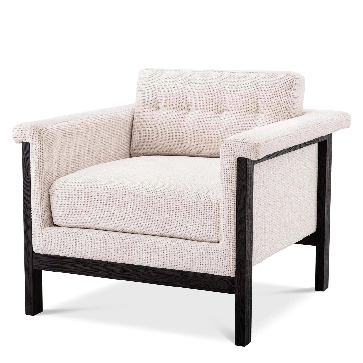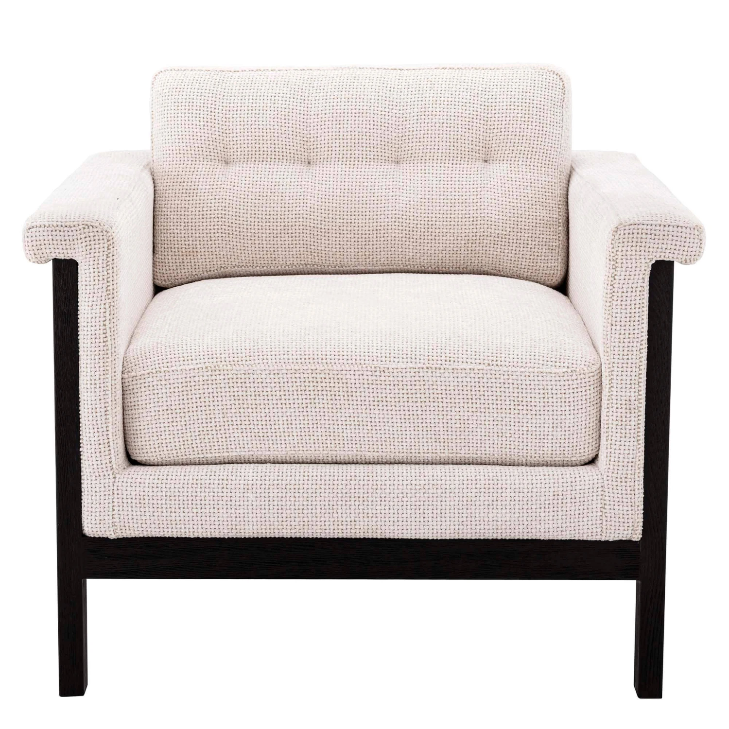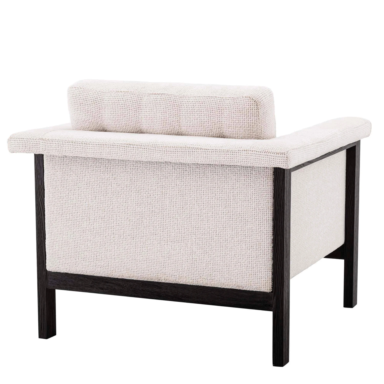Featuring an Art Deco inspired design, the bold and contemporary Allison Chair by Eichholtz is sure to stand proud in any setting. Expertly crafted by skilled artisans and designed with a modern silhouette, this luxurious accent chair will look incredible wherever you decide to place it. With a contemporary black frame, sharp angles and symmetry, upholstered in soft-touch Lyssa off-white fabric with subtle value back detailing, the Allison armchair provides a sleek, stylish and monochromatic look without compromising on comfort.