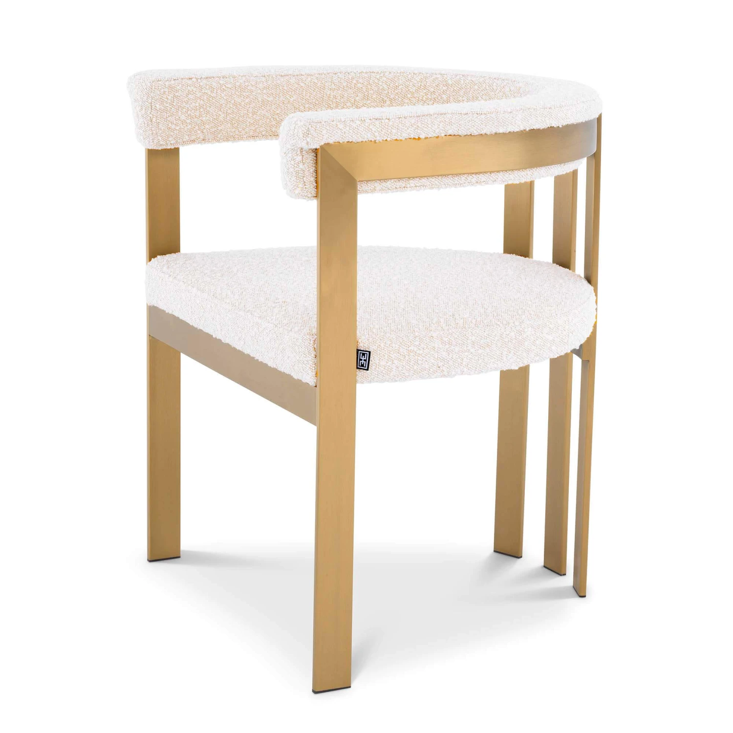 Add a hint of vintage style to you home with the Clubhouse dining chair offering a retro design featuring a geometric brushed brass frame with a circular seat and curved back backrest in a luxurious cream boucle fabric to compliment any existing home décor.