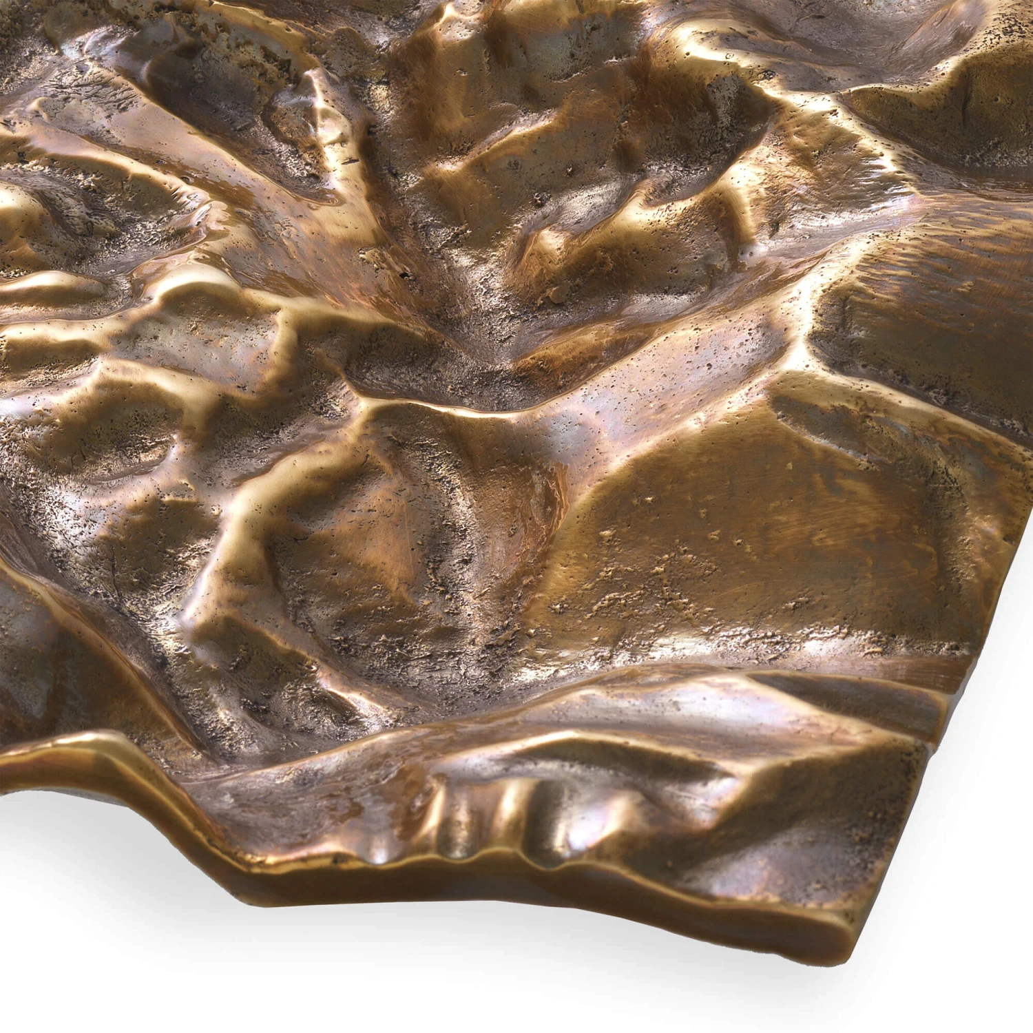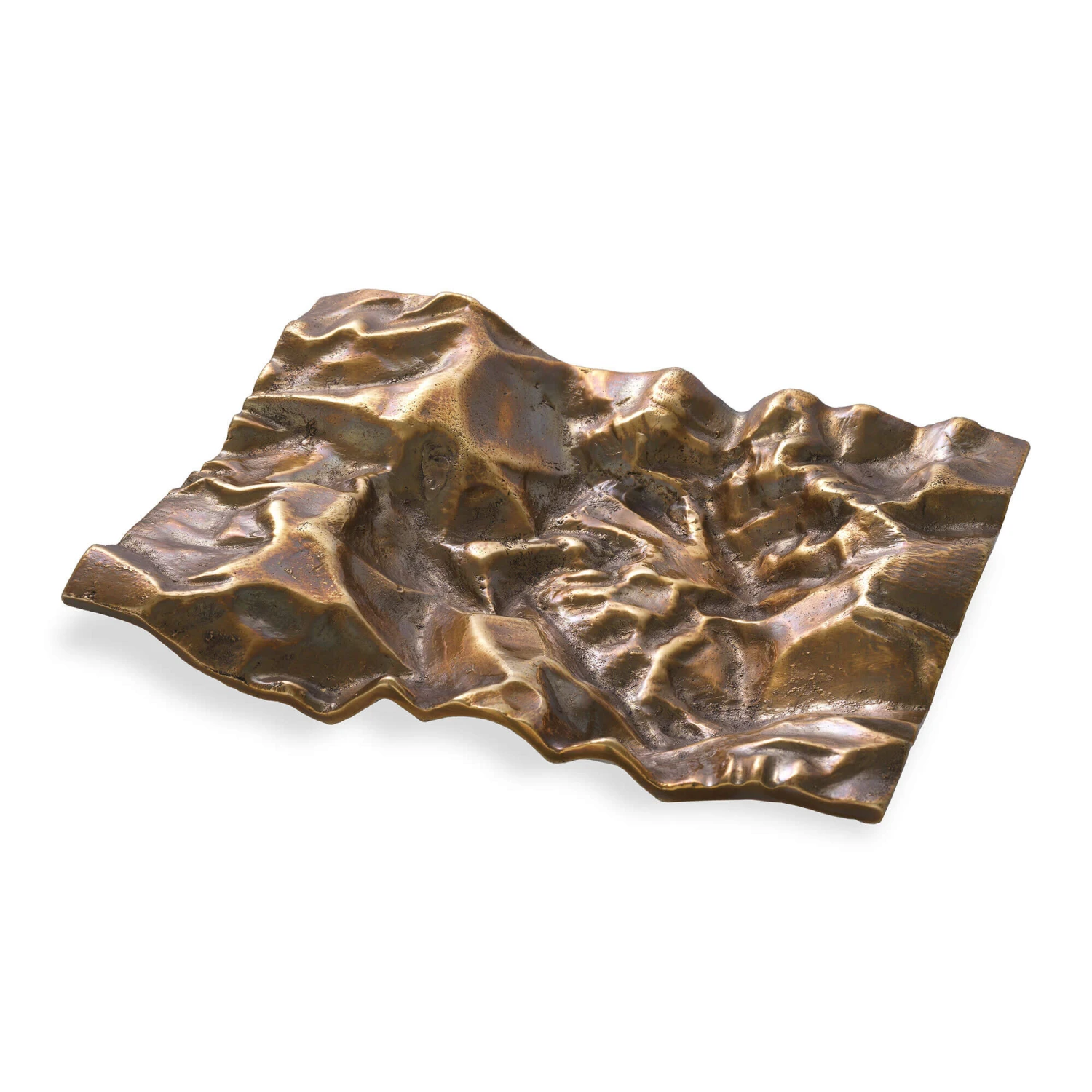 Inject sculptural artistry and vintage glamour into your décor with the Makassar Tray by Eichholtz. Crafted from brass, this captivating tray features a rectangular shape with a creased design and a wavy, undulating surface in a warm antique brass finish, creating a truly unique luxury accent piece. Distinguished by its highly textural and sculpted form, the Makassar is perfect for infusing your home with a touch of whimsy and sophisticated texture in any classic and contemporary luxury setting, making it ideal used as a trinket tray for rings and other small knickknacks or as a stunning centrepiece on a coffee table, console or bookshelf to instantly elevate your interior.