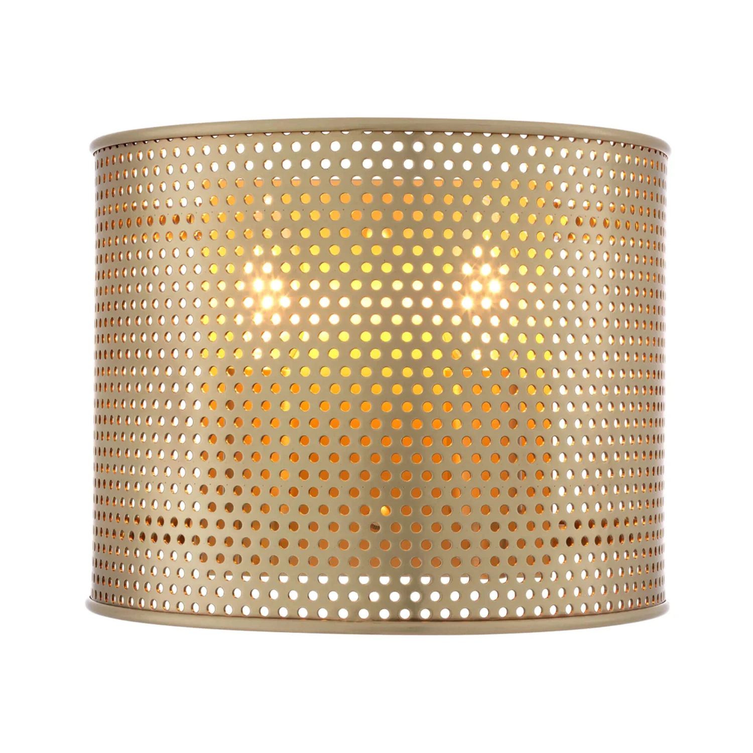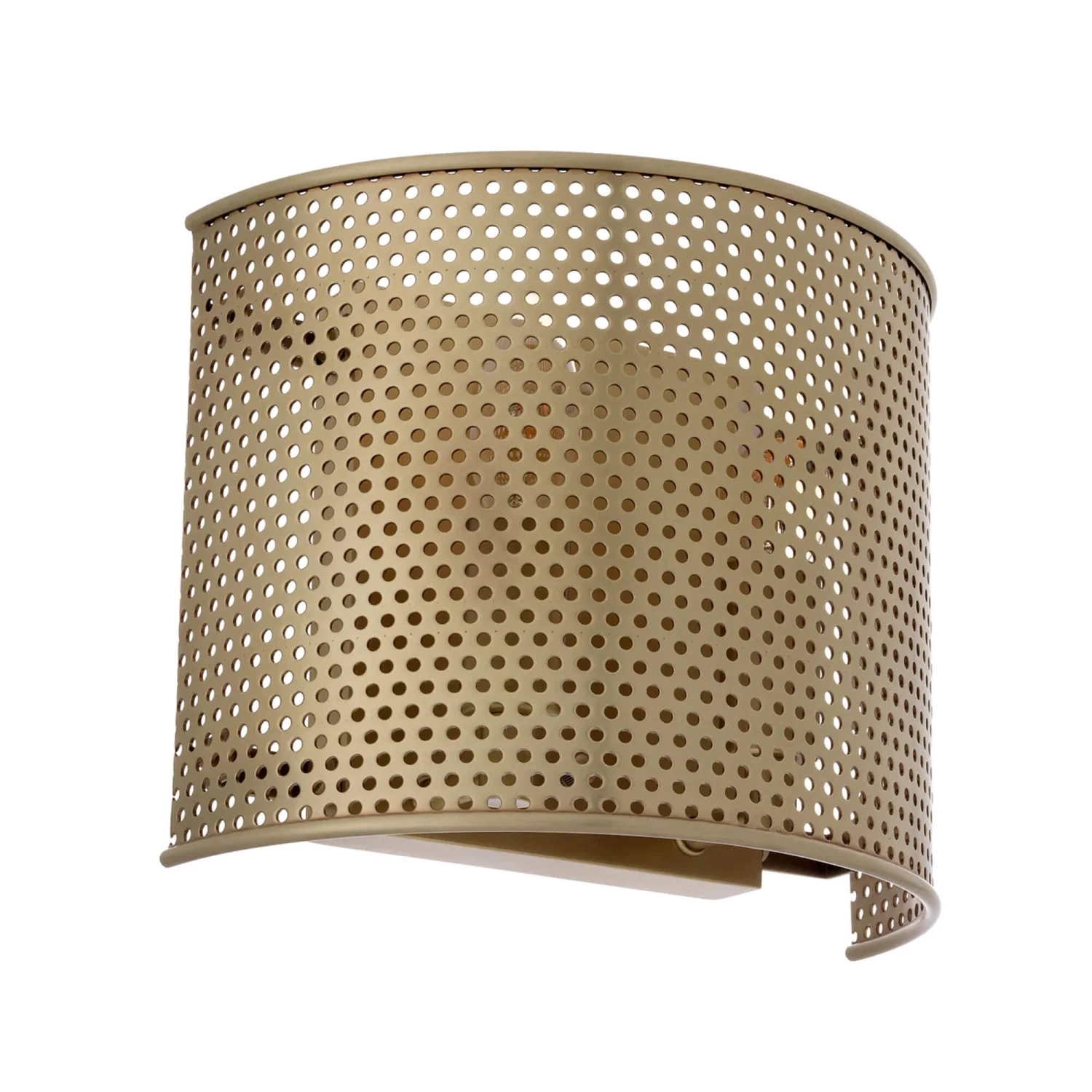 The Morrison Small Antique Brass Wall Lamp by Eichholtz teams a rich coloured finish with a bold geometric design. Illuminable by two required E14 bulbs, this attractive wall lamp features a square base and an industrial inspired shade with small perforated holes in an antique brass finish metal, creating a warm and soft ambient glow. Sophisticated and eye-catching in design, this impressive wall lamp will create a stylish look in any interior, making it perfect placed in a hallway, living room or bedroom.