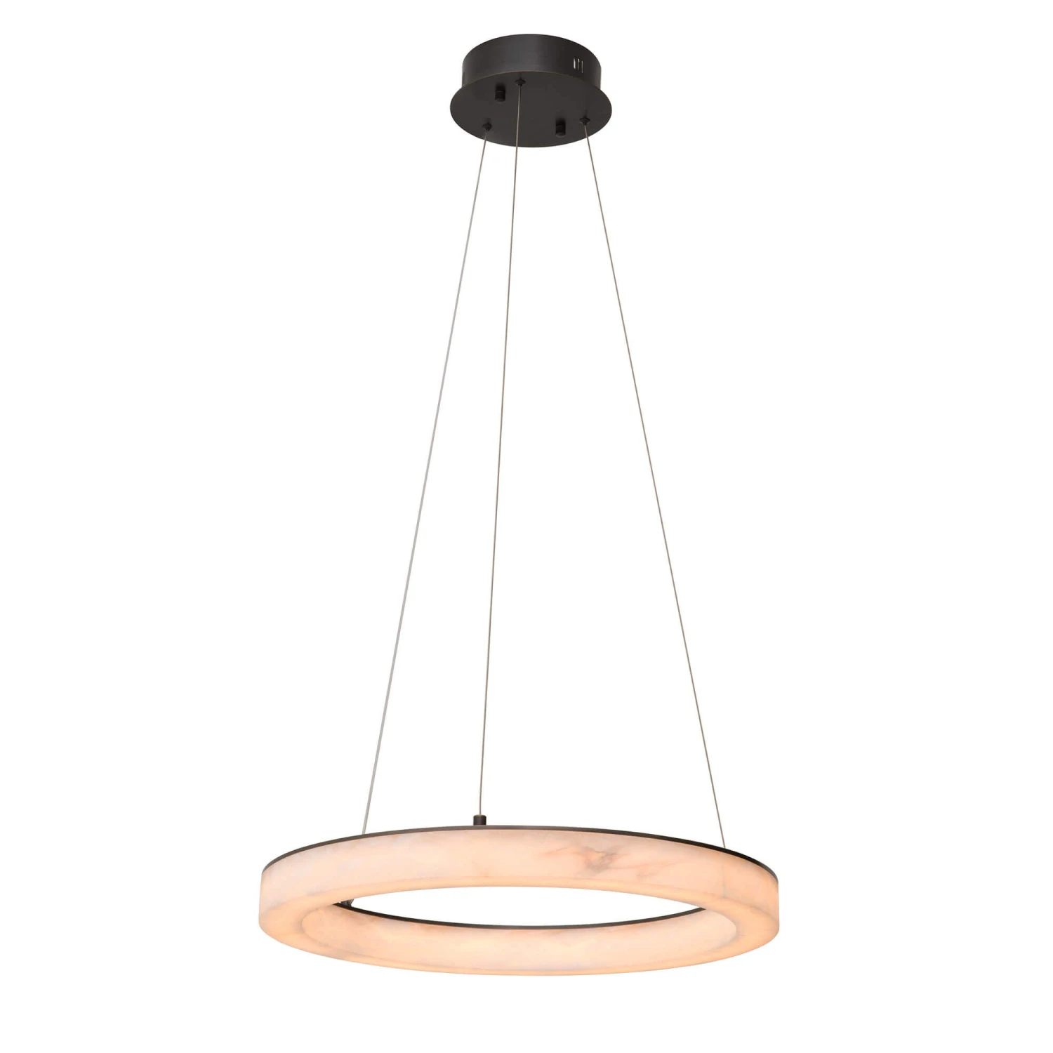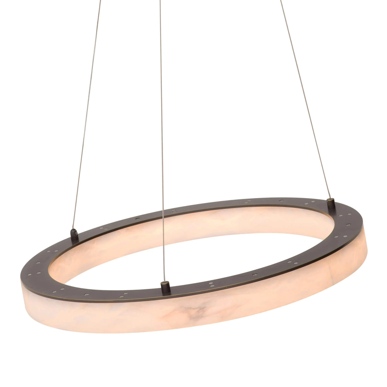The stunning Sankt Small Gallen Chandelier from Eichholtz impresses with its circular design which helps emit plenty of light evenly throughout your home, making it the perfect addition for any modern and luxurious space. Illuminated by an integrated LED strip, with a contemporary design and opulent alabaster details in a rich bronze finish, this pendant light has a metal wire hanging method and is a statement piece, sure to impress.