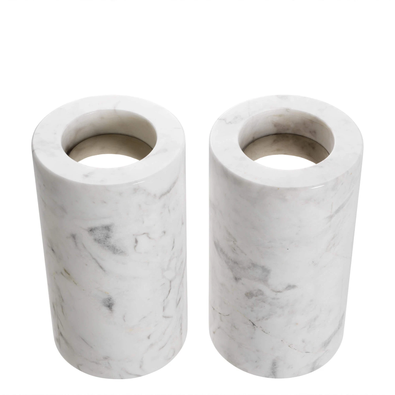 Eichholtz Set Of 2 Tobor White Marble Tealight Holders