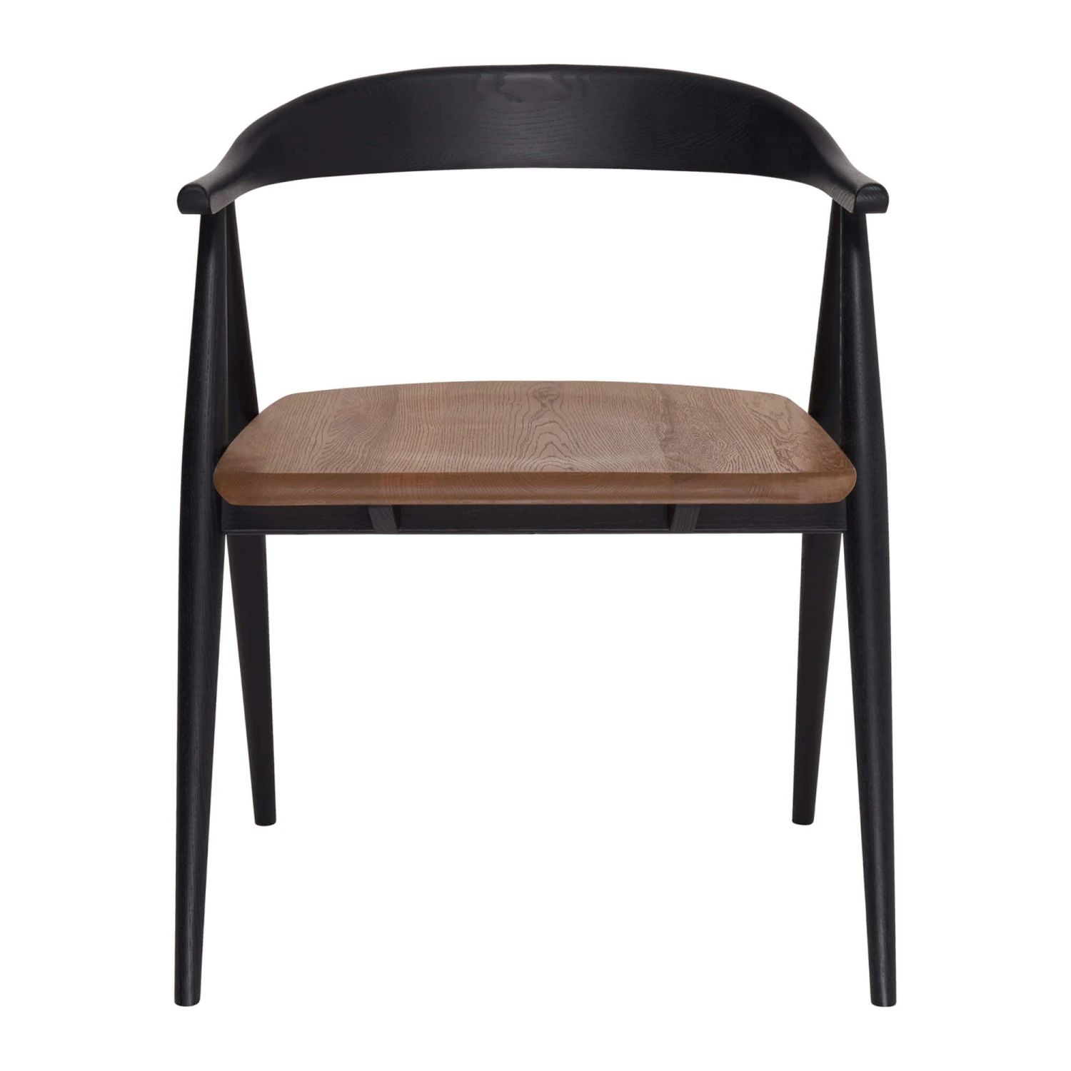 The smooth, matte black finish of the exposed, solid ash wood frame contrasts the natural textured grain and appearance of the brushed, solid oak seat beautifully, whilst the bowed, curved shape of the back and armrests offer support and lend this chair its classic timeless touch.