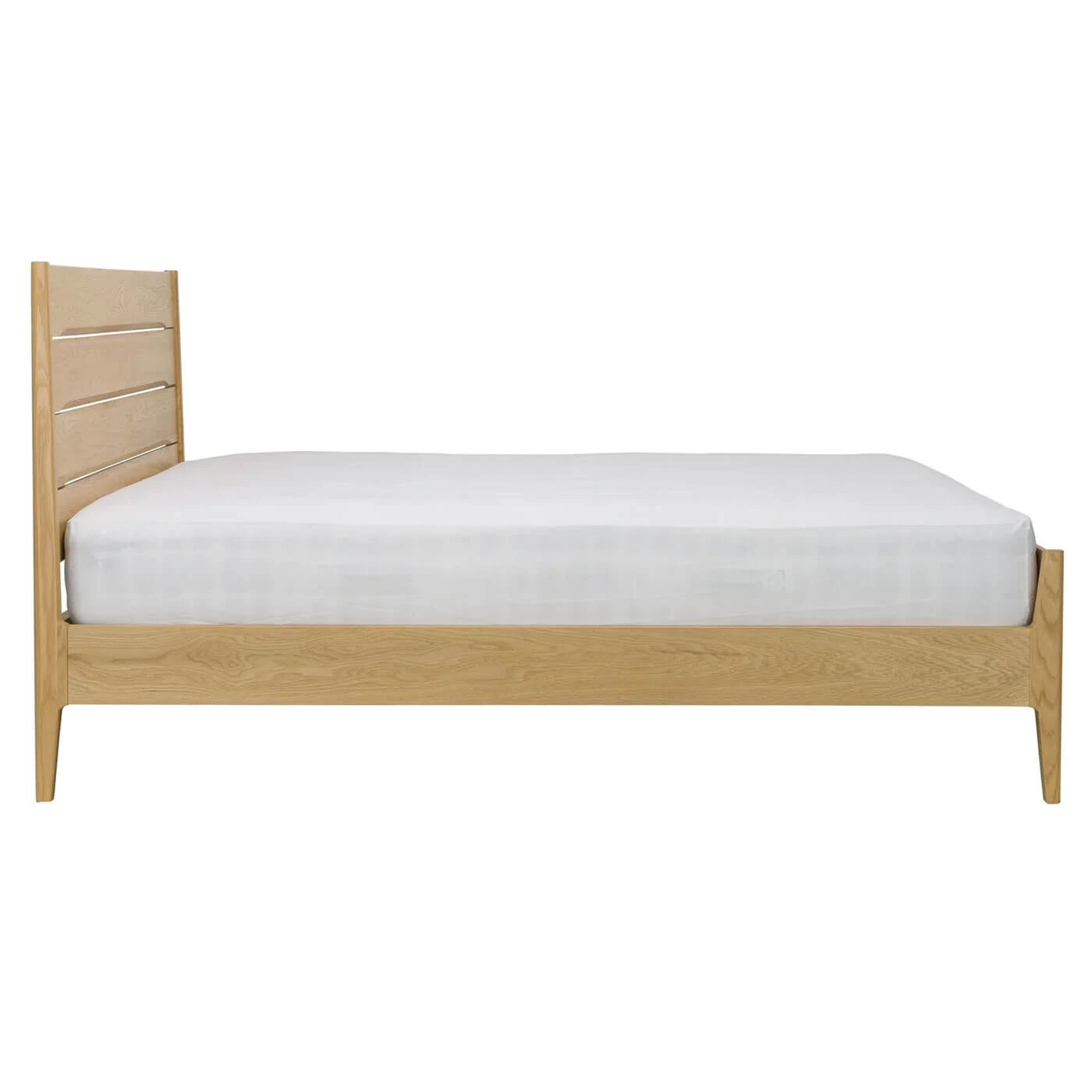 Featuring a clean-lined headboard and supportive frame, the Ercol Rimini Light Oak Kingsize Bed Frame bed is perfect for creating a tranquil sleep setting. Streamlined legs support the frame, creating a sense of space and further enhancing its light and airy feel.