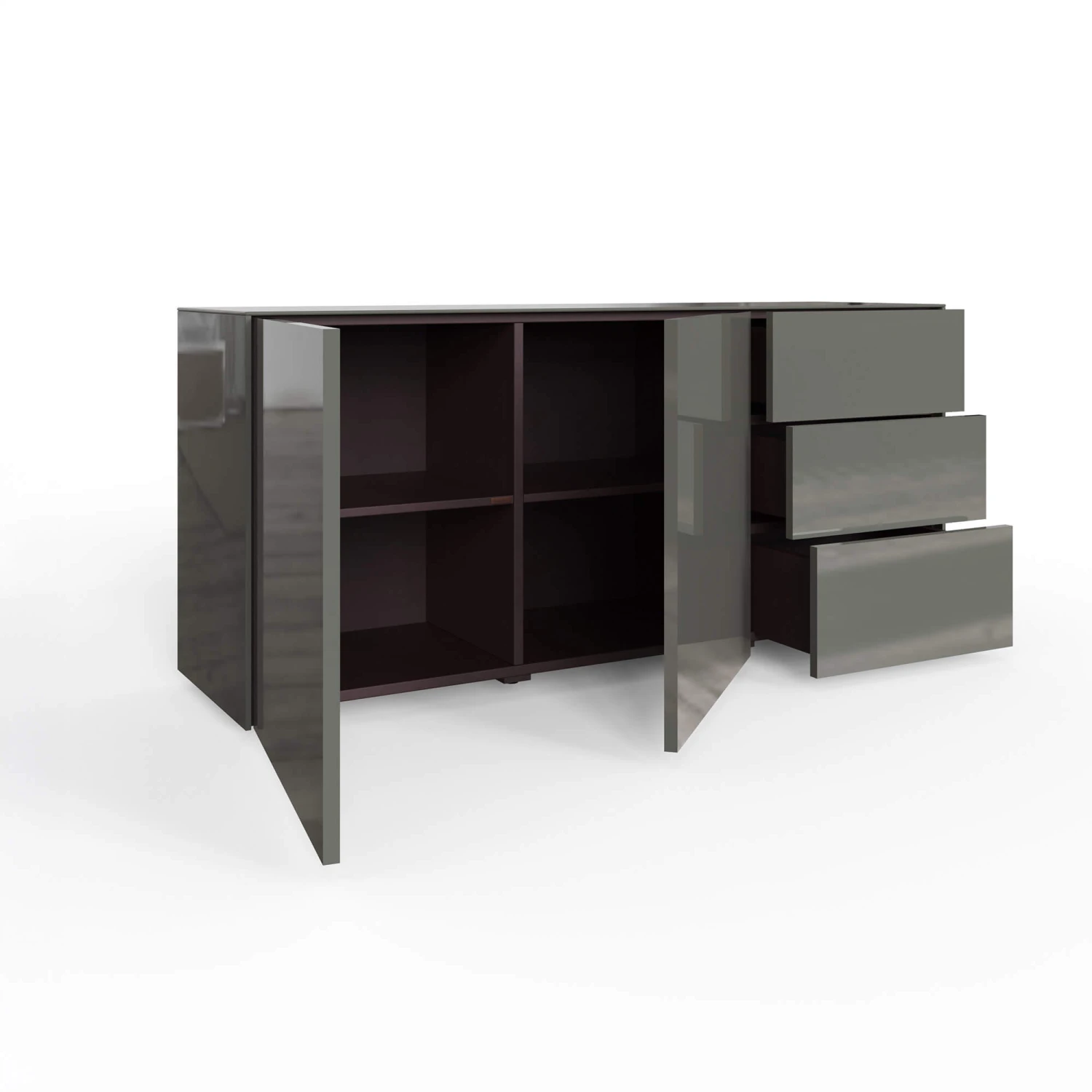 This stylish, modern sideboard would make a welcome addition to any contemporary home, with ample storage space across two cupboards and three side drawers and a chic grey gloss exterior with matching glass top. Part of the Intelligent furniture range, the sideboard features a wireless phone charging compatibility (QI standard) and full colour spectrum, ambient smart LED lighting. The sleek design and smart technology make it an eye-catching and practical piece of furniture with an on-trend, minimalistic style suitable for any room in the home.