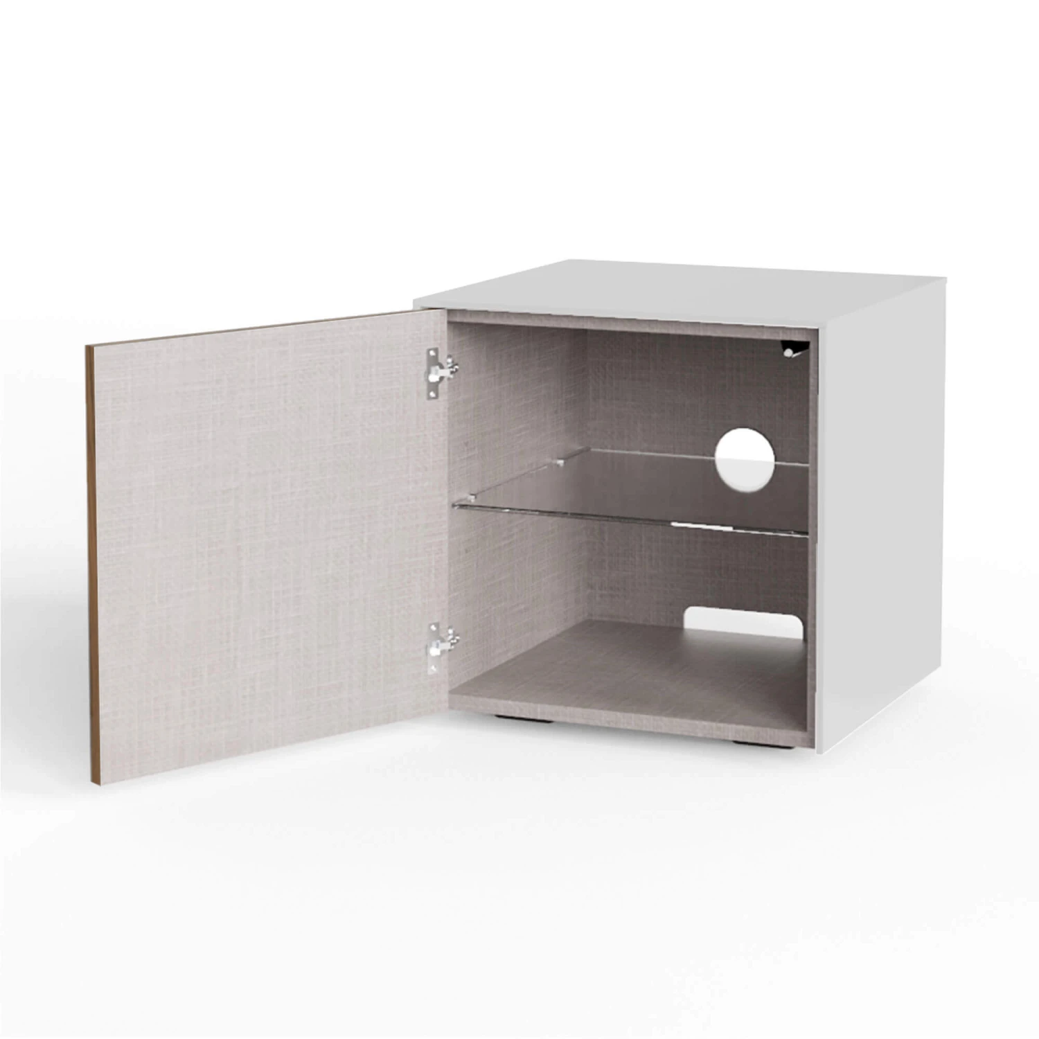 Created with style and functionality in mind, the Intelligent Side Table boasts a scratch resistant, high gloss white exterior with and walnut effect door, glass top and a textured grey interior with adjustable internal shelves for ample storage. The combination of an ultra-chic design and superb technology makes this a must-have piece of furniture for any modern home.