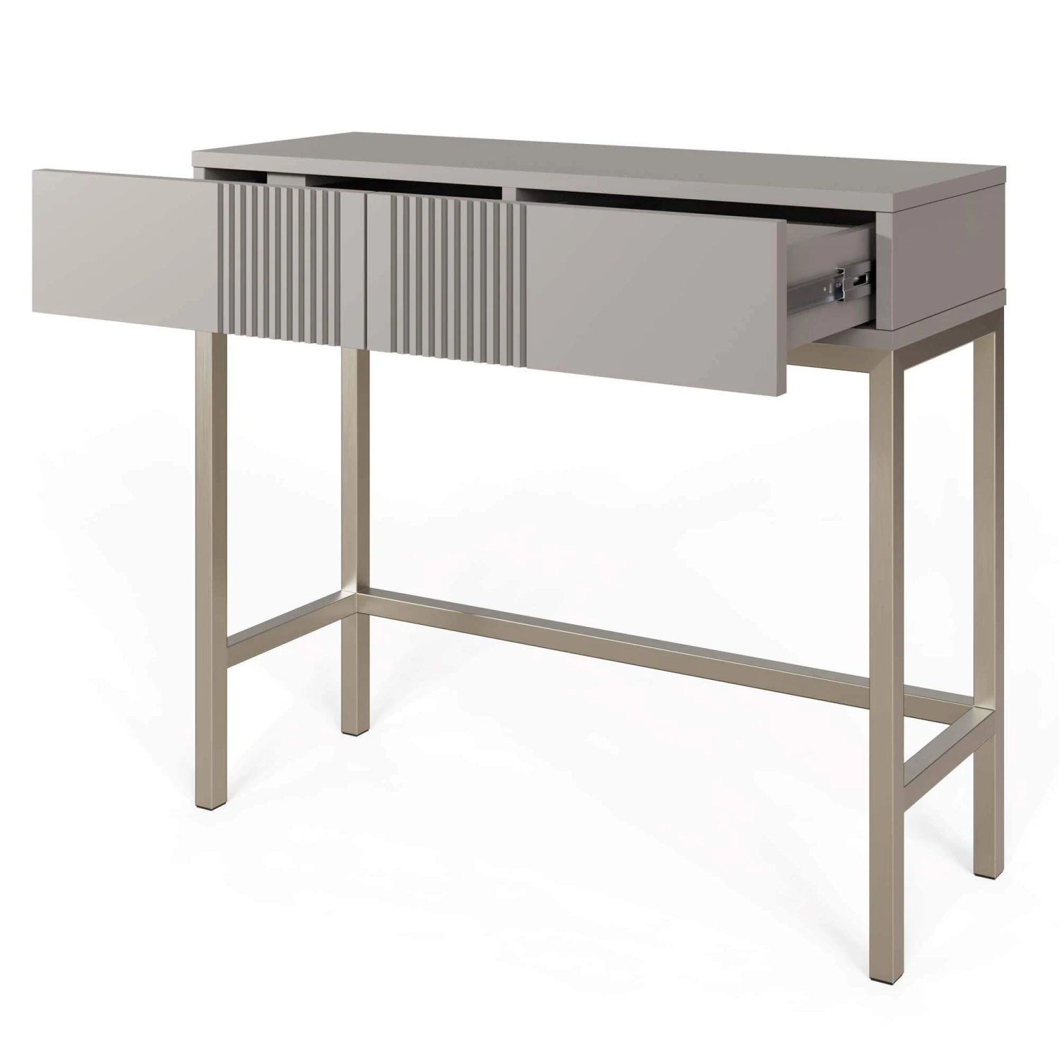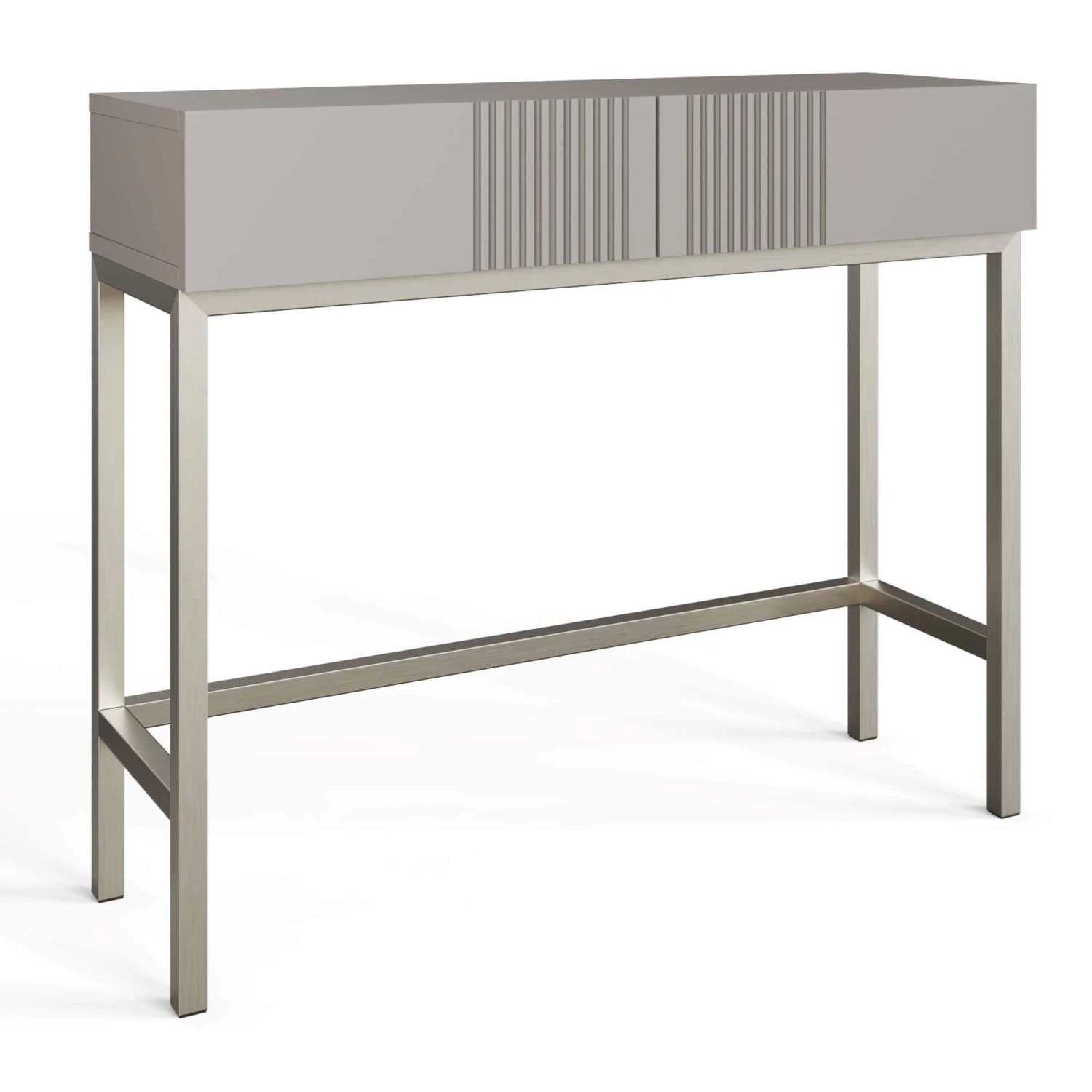 A signature fluted design with two push to open drawers, crafted with sleek legs and a minimalist design.