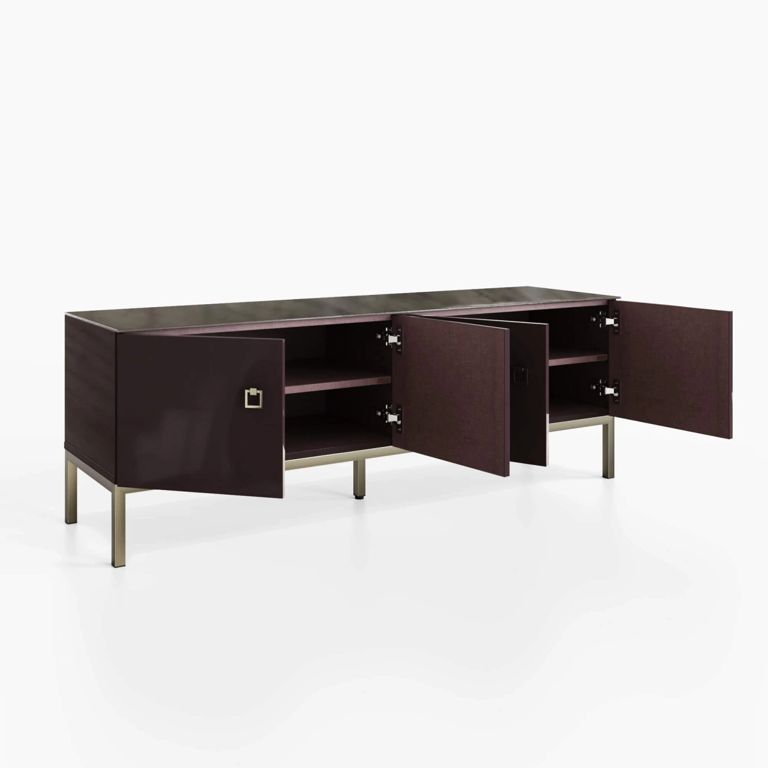 The Frank Olsen Lyra Plum Black TV Unit features 4 large doors with champagne coloured handles and legs that complement the unit’s high-gloss finish. On the interior are two adjustable shelves, each finished in a purple scratch proof coating, complimenting the units exterior finish. At the rear of the unit is ambient lighting that uses the full RGB colour spectrum, which can be controlled via the Frank Olsen app, or via your Alexa smart home device allowing easily create your ideal ambience. built-in is wireless charging capabilities further finishing that seamless look.