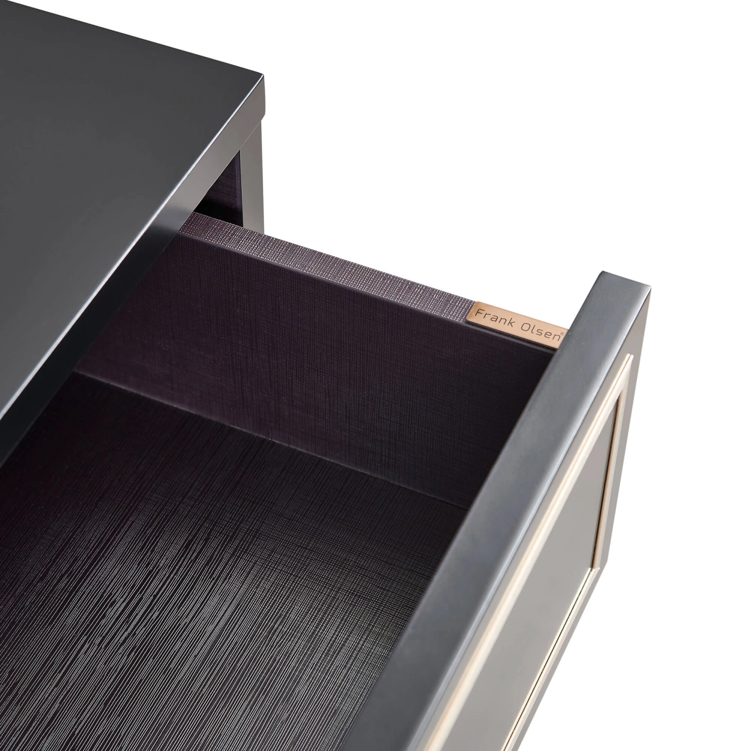 The console table features 2 spacious drawers offering ample storage to keep your space organised and clutter-free. The interior reveals Frank Olsen’s signature midnight purple finish, a unique and stylish detail. A standout feature is the integrated ambient lighting on the back of the unit, which can be controlled via your voice or a dedicated app. The console table also benefits from click together assembly, allowing for a quick and straight forward building process.