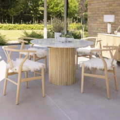 Rochelle 120cm Round Mango Wood & Marble Dining Table & 4 Larvik Natural Chairs