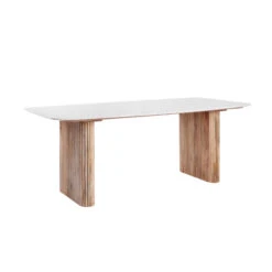 Rochelle 200cm Mango Wood & Marble Dining Table & 6 Larvik Black Chairs