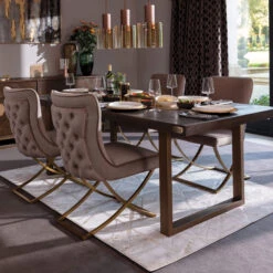 Olivia James Hemingway 220cm Mahogany Oak & Gold Dining Table & 6 Grey Chairs With Gold Legs