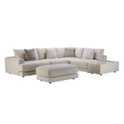 Naxos Large Tyne Natural Fabric Open End Left Arm Corner Group With Rectangular Table & Footstool