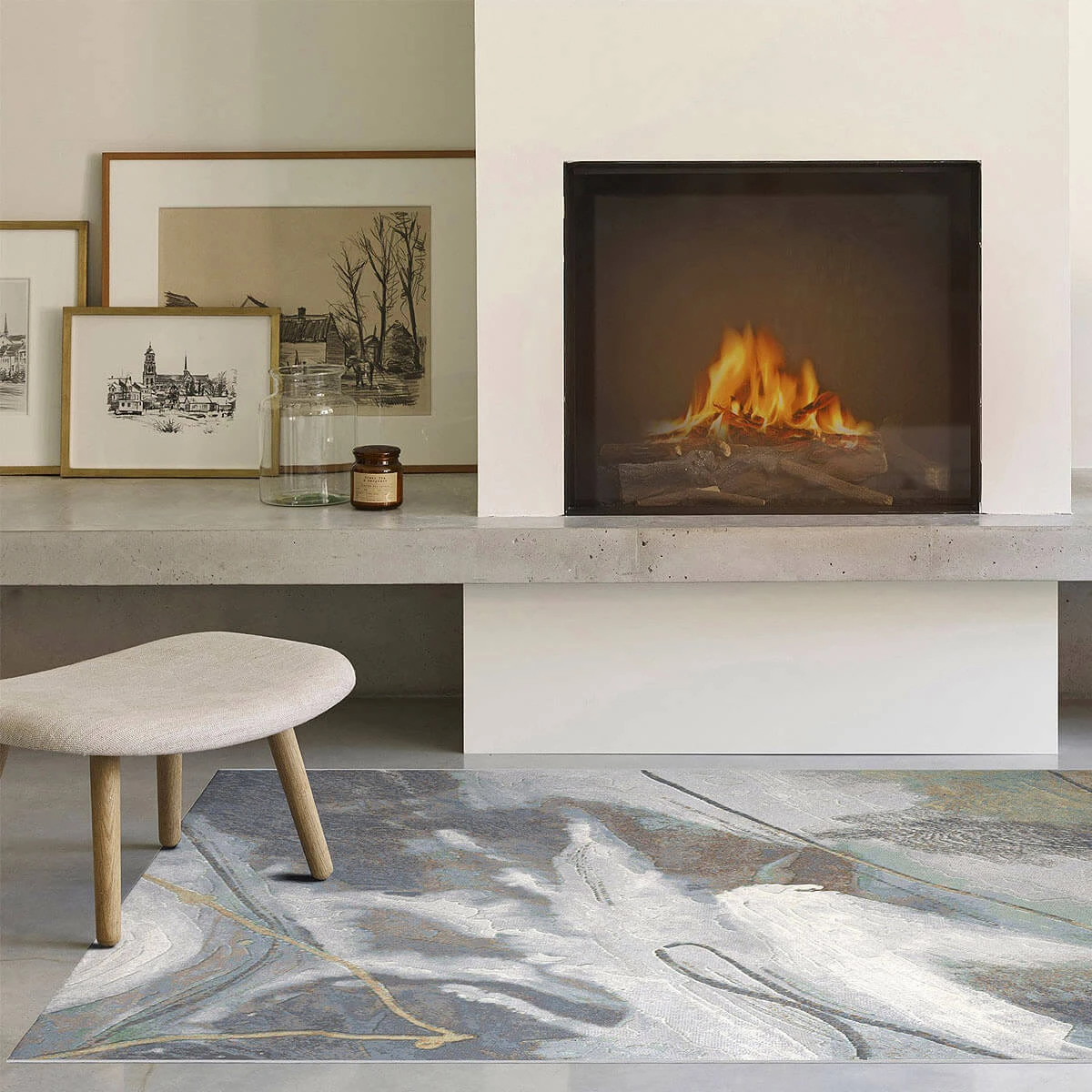 Hues of grey, green and gold against a navy and cream background combined with a swirling, marbleised effect. The Galleria is a feature rug collection like no other. Perfect for those who prefer a more artistic style with their décor, the Galleria rugs offer the very best in creative design. The quality of the Galleria is also second to none, with an exceptionally high density pile and skilfully blended colour.