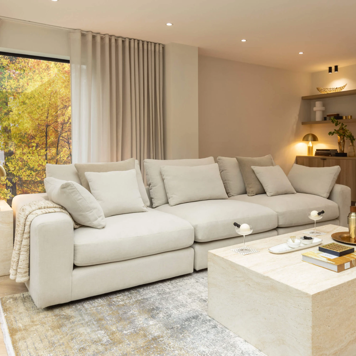 Hand-made by skilled craftsmen in the UK, the Genevieve sofa is sturdy and reliable, supported by a hardwood frame crafted from sustainably sourced timber. Sumptuous seats are padded with a specially contoured foam that gives a cloud-like and squishy sit with bounce and resilience, finished with a dreamy feather topper for ultimate comfort. Four 100% responsibly sourced, duck feather scatter cushions complete the sofa, with two larger cushions in a rich cappuccino fabric and two smaller scatters in the same ivory fabric as the sofa.