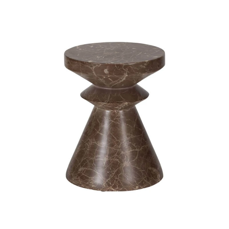 The Chord Brown Lamp Table is a sculptural accent piece that truly celebrates the use of geometric forms and shapes. This striking brown lamp table features a distinctive, tapered profile reminiscent of a classic chess piece, with a round base supporting a central disc that leads up to the flat top surface. The entire table is finished in a luxurious dark brown marble effect, enriched by beautiful light brown veining that gives the piece an authentic, high-end look.