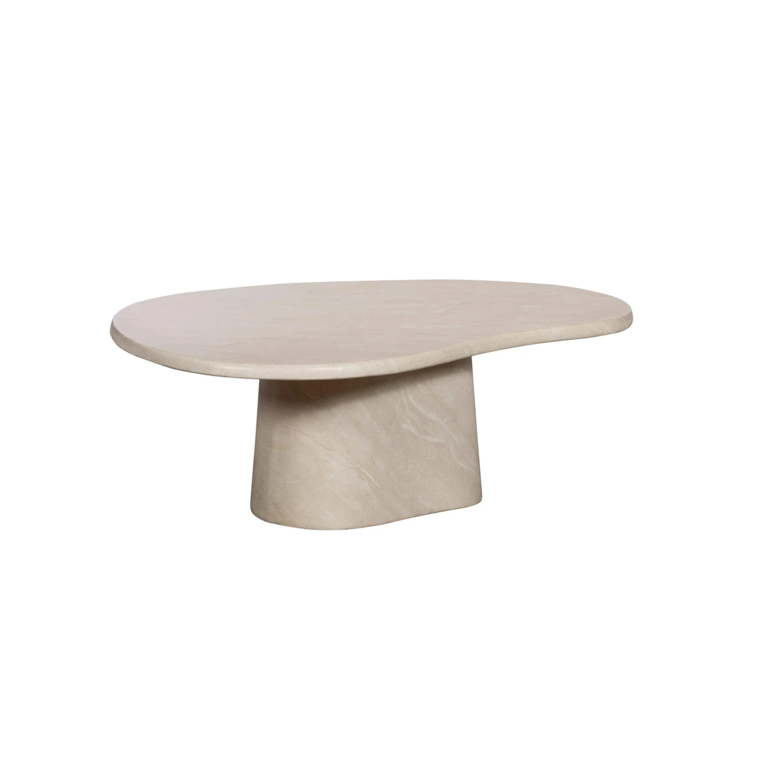 The Glass House Solna Large Travertine Effect Coffee Table is a contemporary statement piece, expertly designed to bring organic elegance into your living or dining space. This organic shape coffee table features a distinctive kidney-shaped top with a soft texture. The travertine effect finish delivers the luxurious look of natural stone while maintaining the durability and practicality expected from a high-quality concrete coffee table, making it both visually striking and easy to care for.