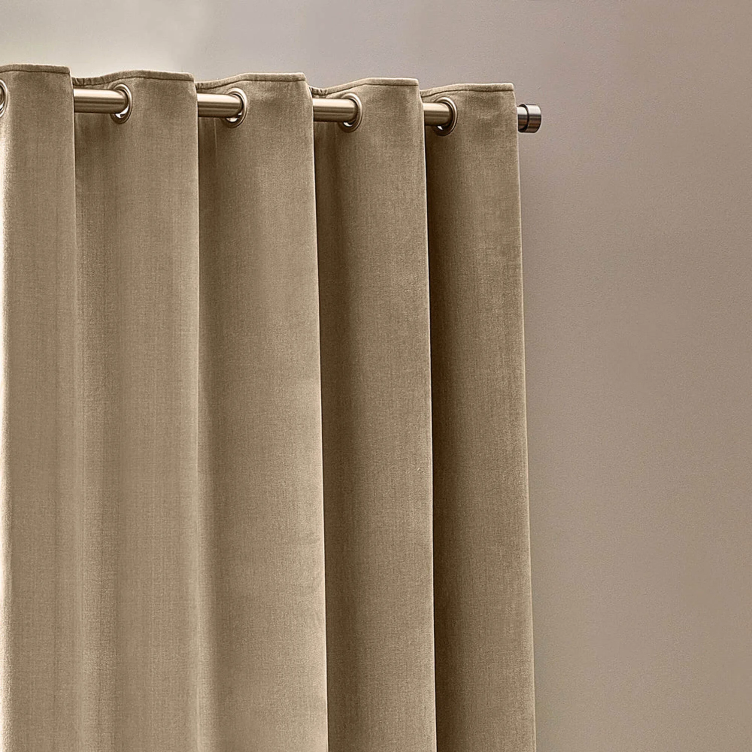 Add a elegant yet contemporary style to any bedroom or living space with the Heavy Chenille Natural Room Darkening Eyelet 90″ x 72″ Curtains. Crafted from 100% polyester, these sumptuous curtains features a plain and opulent chenille velvet fabric, making it super soft yet durable. Complete with an easy hanging eyelet heading, these sophisticated curtains has a room darkening lining ideal for keeping out the light. Available in various sizes and a variety of muted earthy tones, the Heavy Chenille curtains will go with any modern and neutral décor with its calm and washed appearance.